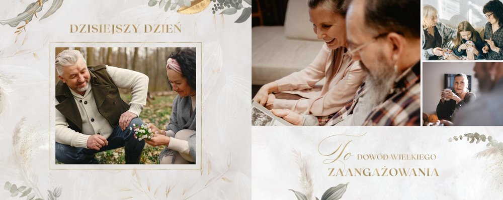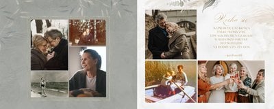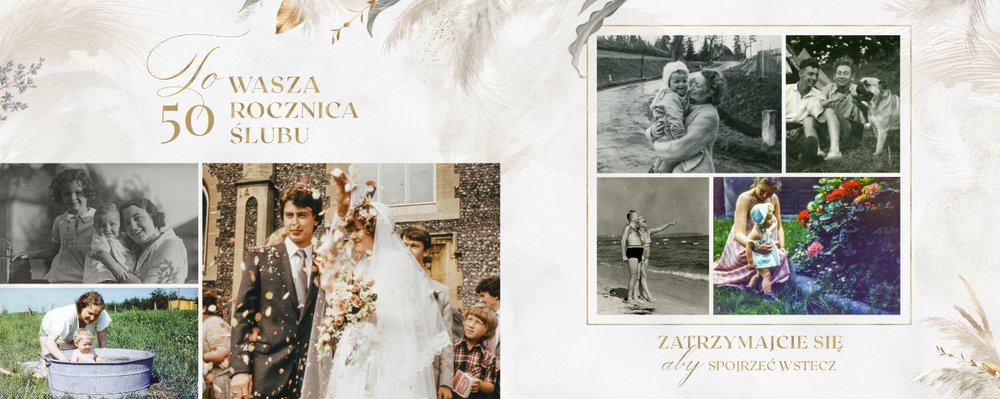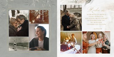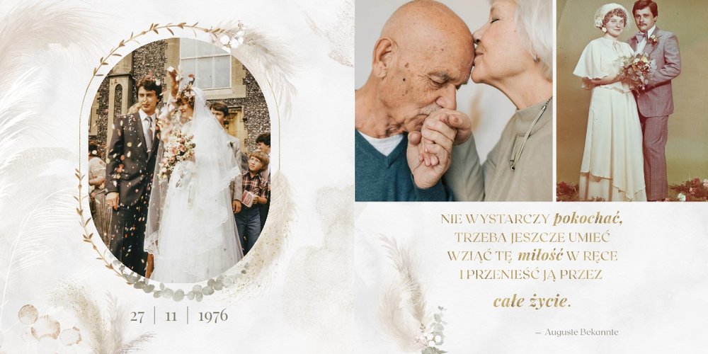 Fotoalbum z szablonem "Złote gody" to wzruszający zbiór wspomnień, który przypomni o najpiękniejszych chwilach. Wystarczy, że wypełnisz komórki zdjęciowe obecnymi fotografiami najbliższych, ale i zeskanowanymi zdjęciami sprzed lat. Ich dopełnienie będą stanowić gotowe teksty, życzenia i sentencje, które z pewnością wywołają masę wzruszeń.