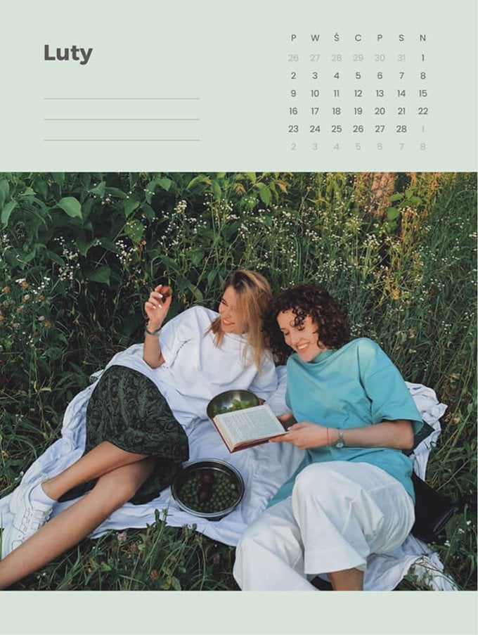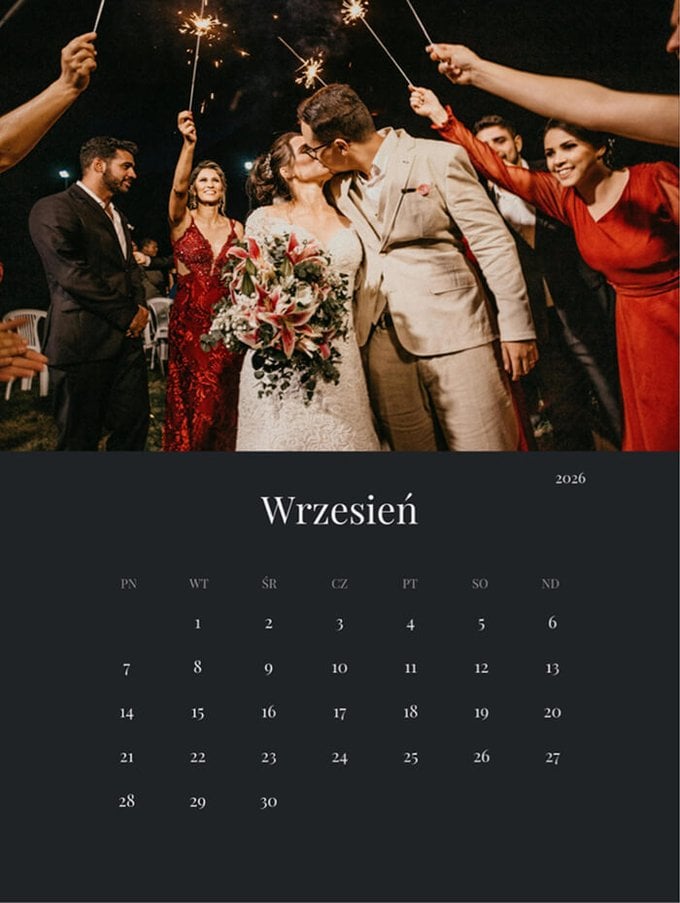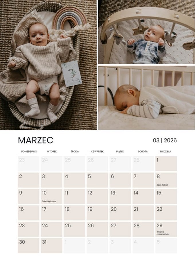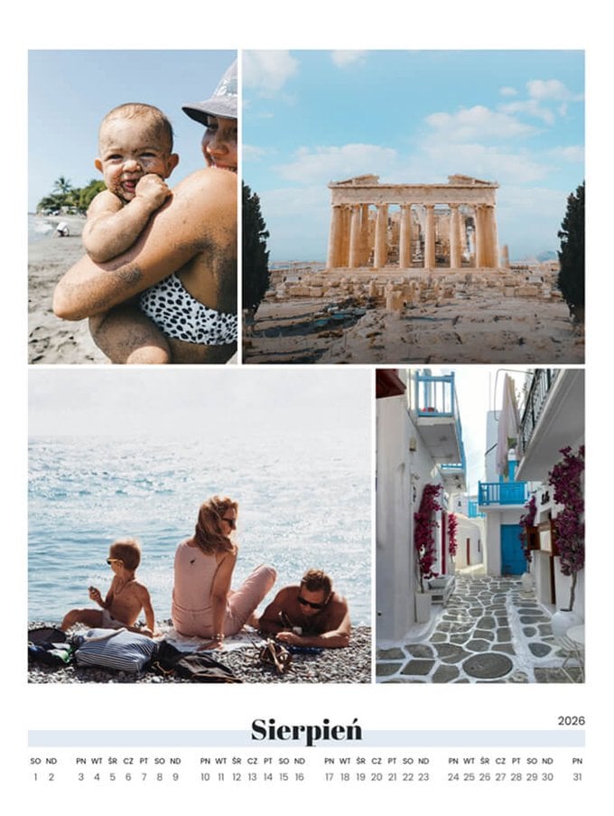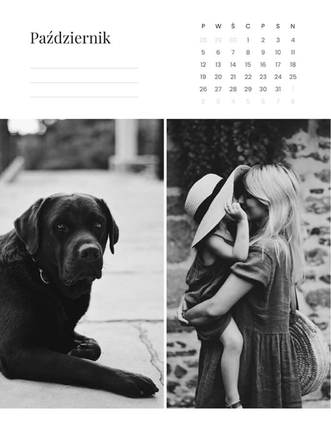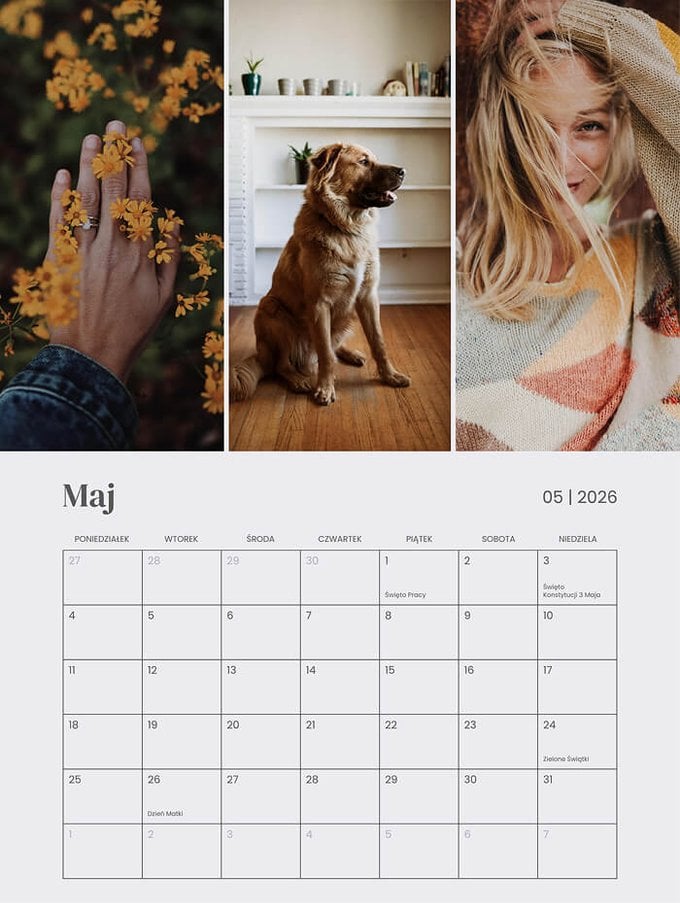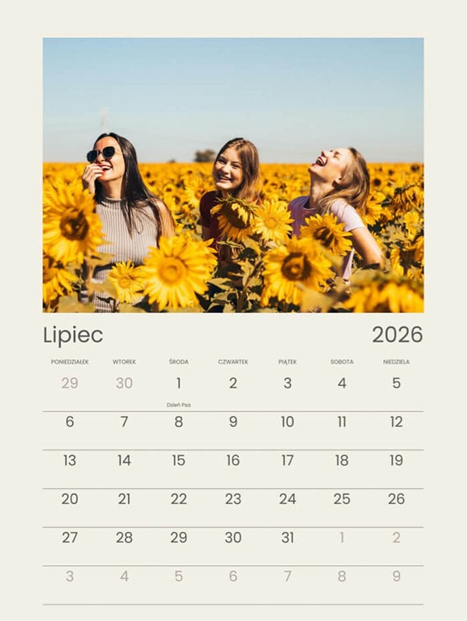 Przygotowaliśmy gotowe układy, które pomieszczą od 1 do 6 zdjęć na każdej karcie kalendarza.