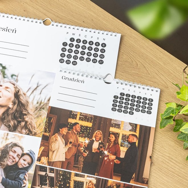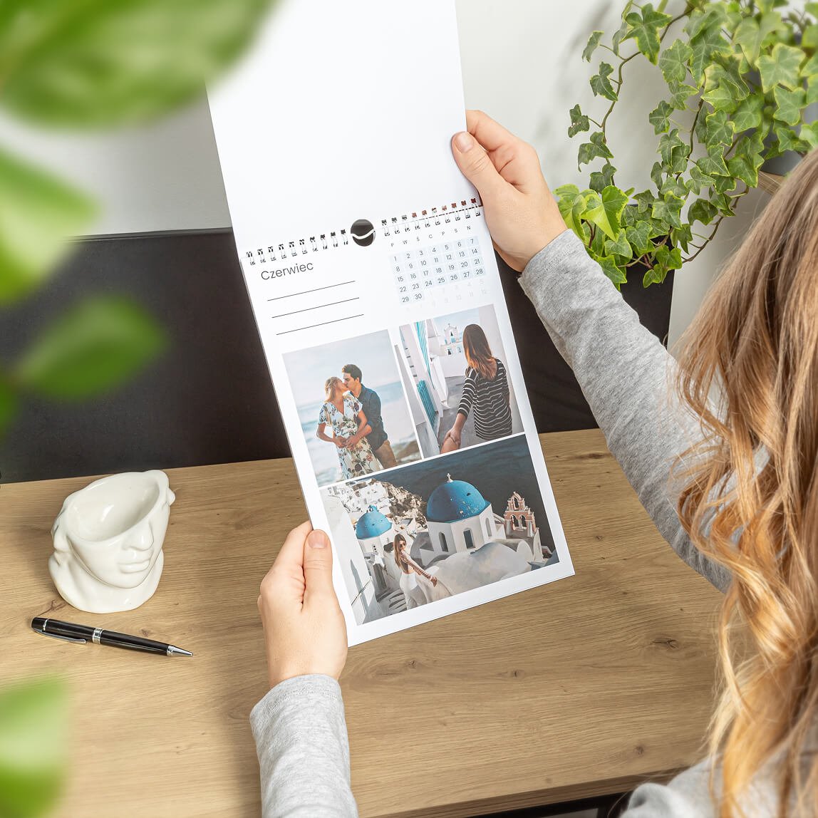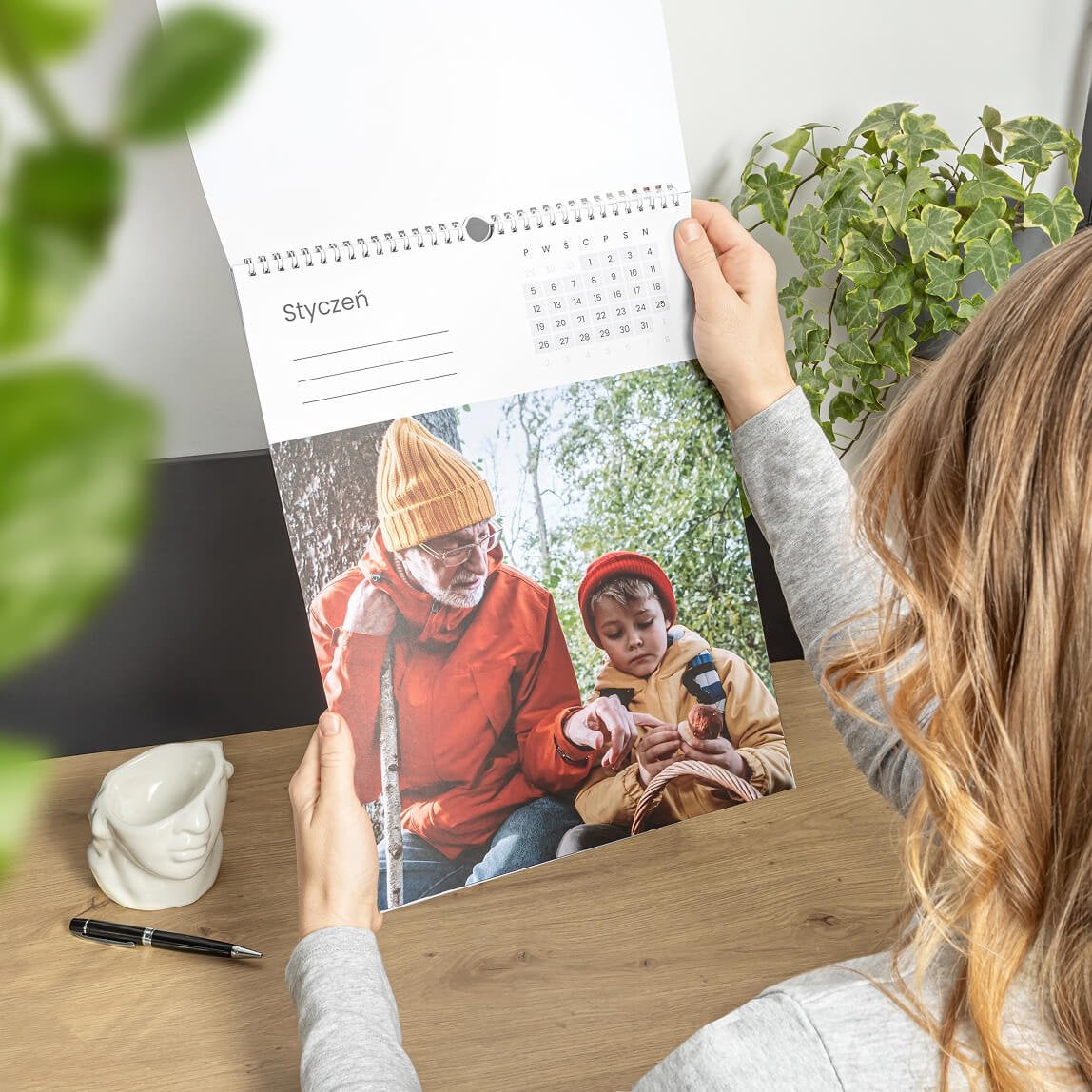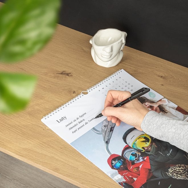 To kalendarz w wybranym formacie (A3 lub A4) zawierający wybrane przez Ciebie zdjęcia.