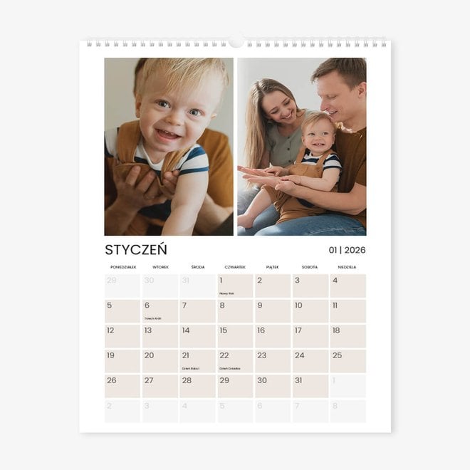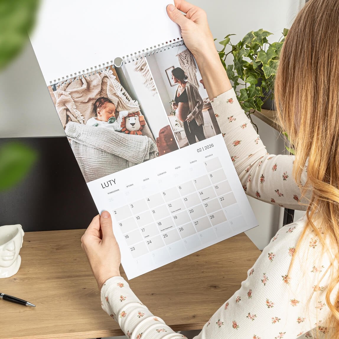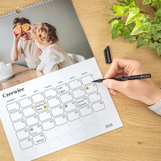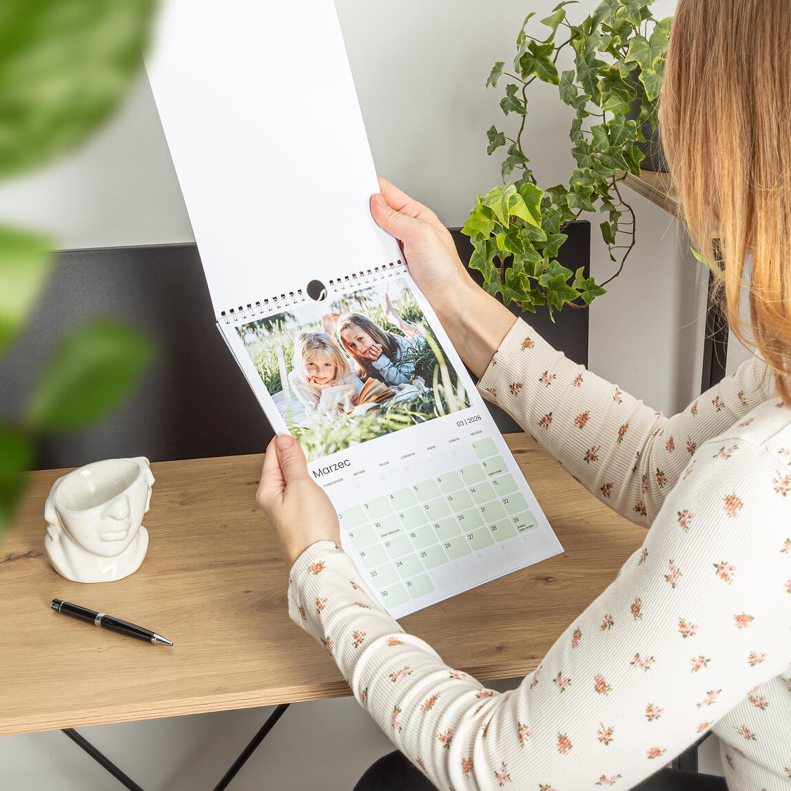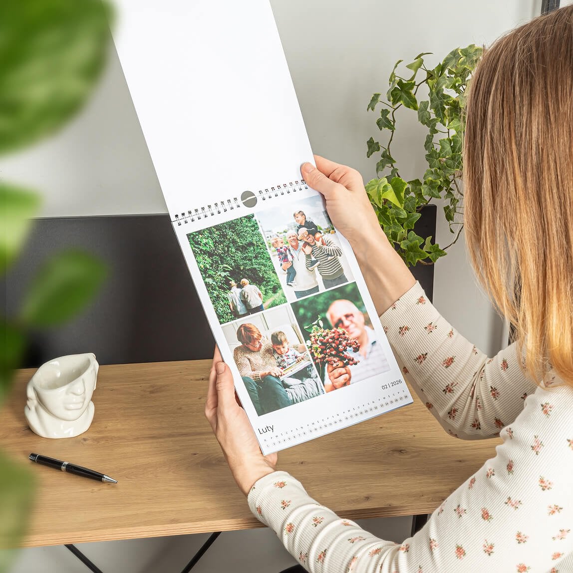 To kalendarz w wybranym formacie (A3 lub A4) zawierający wybrane przez Ciebie zdjęcia.