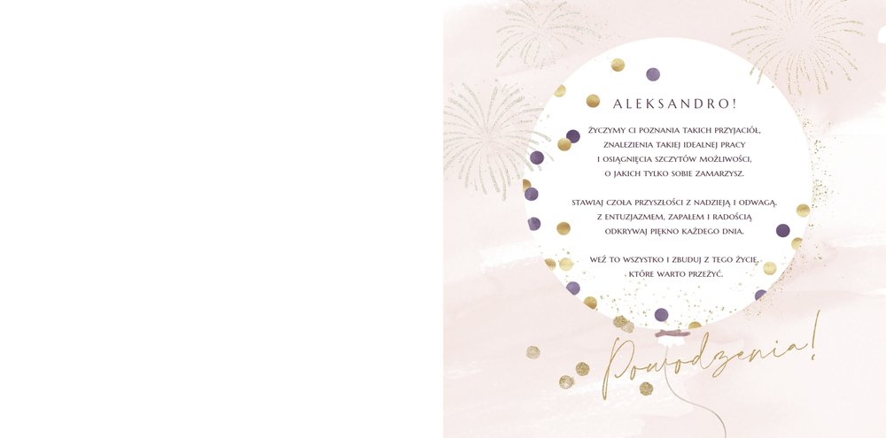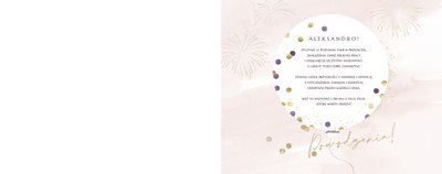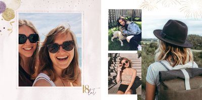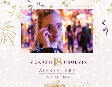 Szablon "18 lat minęło" to propozycja prezentowa pełna odcieni fioletów, złota oraz srebra. Kolory te są motywem przewodnim tego szablonu. Wewnątrz znajdziesz także urodzinowe elementy graficzne, złote napisy, a także nietypowe układy zdjęć.