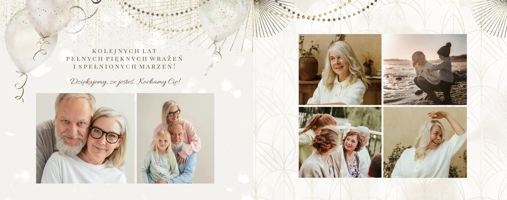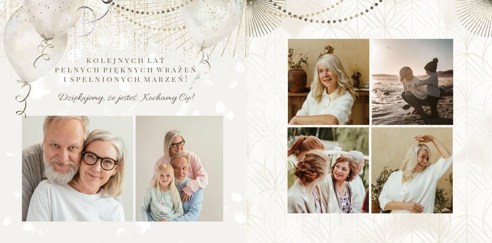 Tak wyjątkowy jubileusz, jakim są 50 urodziny, nie powinien odbyć się bez echa! Zebrane zdjęcia sprzed lat to doskonały sposób na powrót do emocji, smaku i zapachu tamtych chwili. Niech każda strona fotoksiążki z szablonem "50 urodziny kobiety" przypomina o najlepszych chwilach z życia 50-latki.