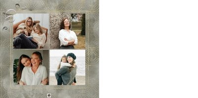 Delikatniejsza, kobieca wersja szablonu "50 urodziny mężczyzny", również nawiązująca swoim stylem do stylu artdeco, jednak tym razem wpisująca się idealnie w kobiece gusta. Obłe kształty (takie jak stylowe łuczki czy koła) oraz jasne, stonowane kolory dodają całości elegancji, podkreślając przy tym każde zdjęcie solenizantki. Metaliczne elementy nawiązują do celebracji i podkreślają urodzinowy charakter fotoksiążki. Układy komórek zdjęciowych świetnie skomponują się z zarówno skanowanymi zdjęciami sprzed lat, jak i nowoczesnymi zdjęciami zrobionymi smartfonem.