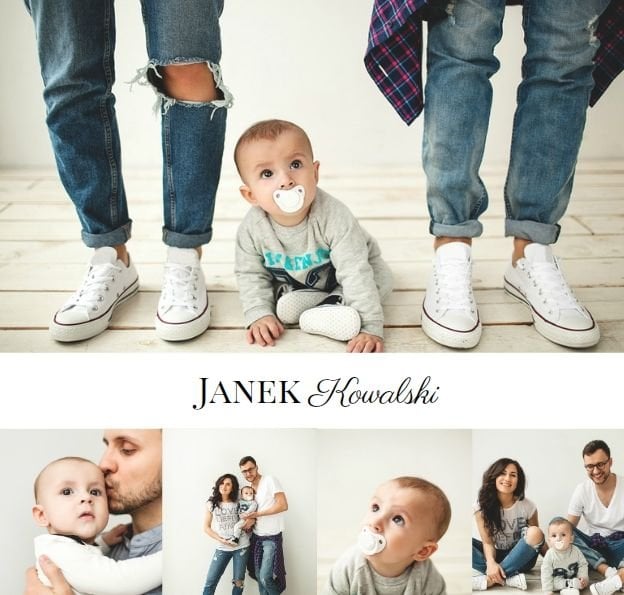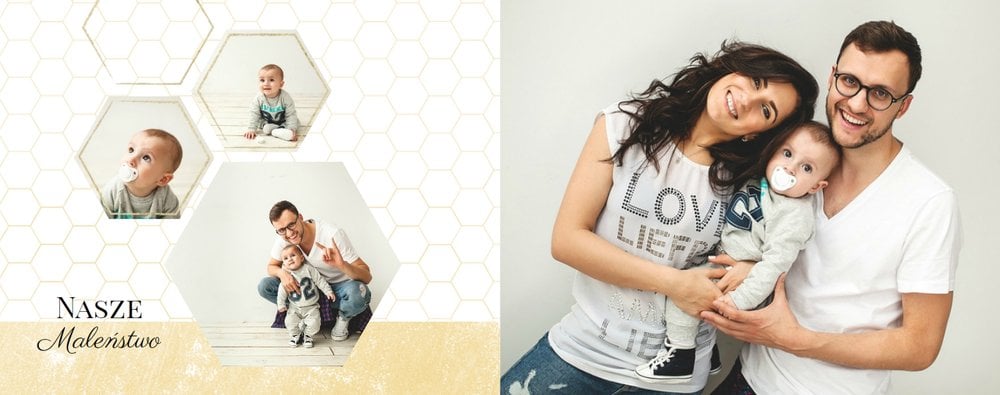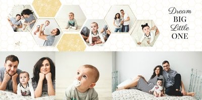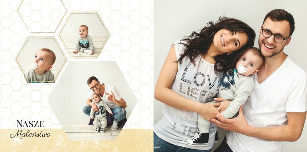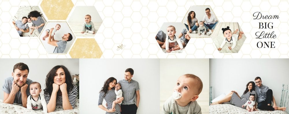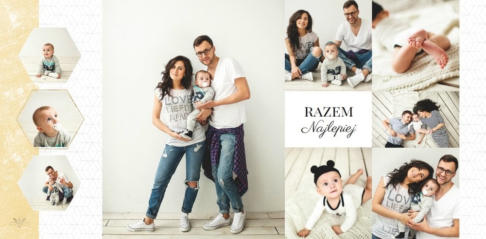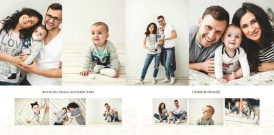 Z szablonem Album dla dziecka zaprojektujesz wyjątkową fotoksiążkę, która zatrzyma najlepsze wspomnienia z pierwszych miesięcy życia Twojego dziecka. Piękna grafika, ciekawe ozdobne motywy, oryginalne układy oraz dużo miejsca na osobiste notatki dodatkowo urozmaicą ulubione fotografie. Fotoksiażka z tym szablonem będzie pamiątką na długie lata.
