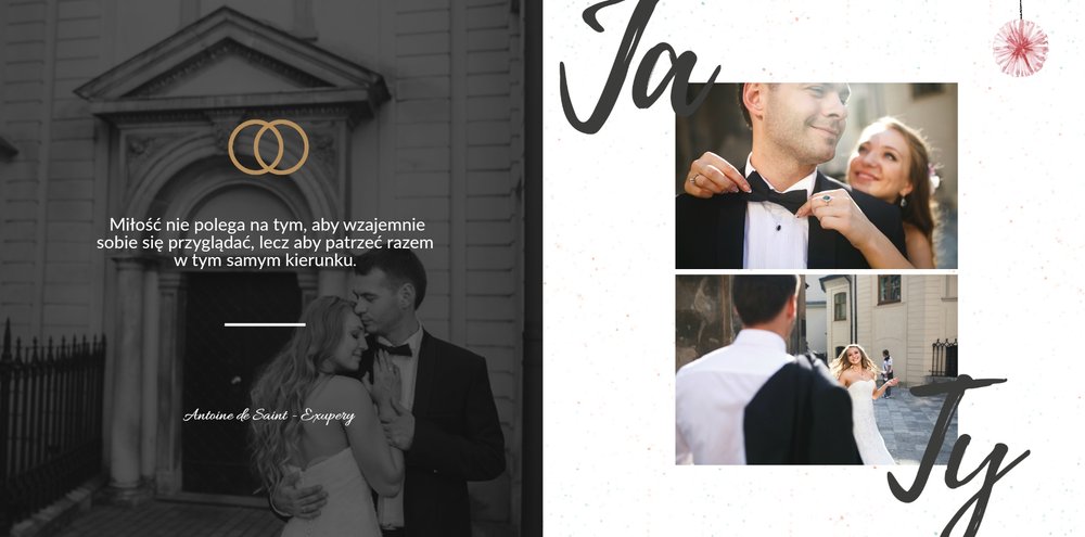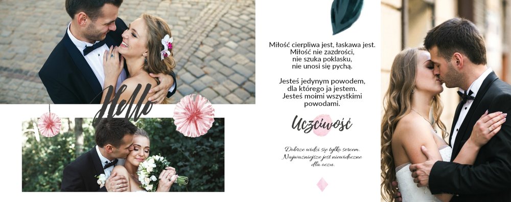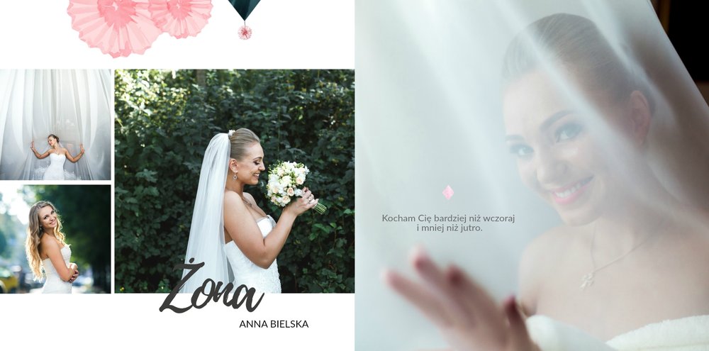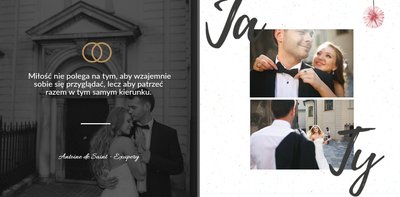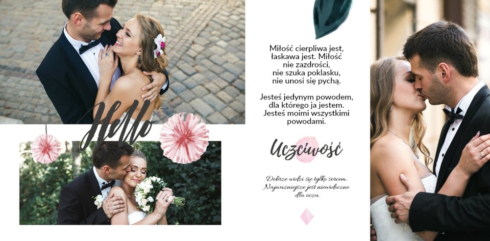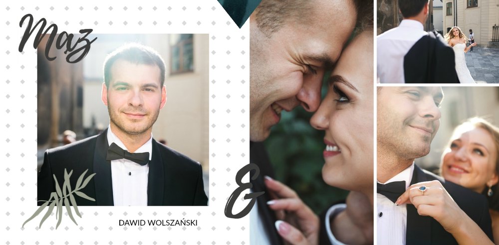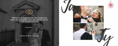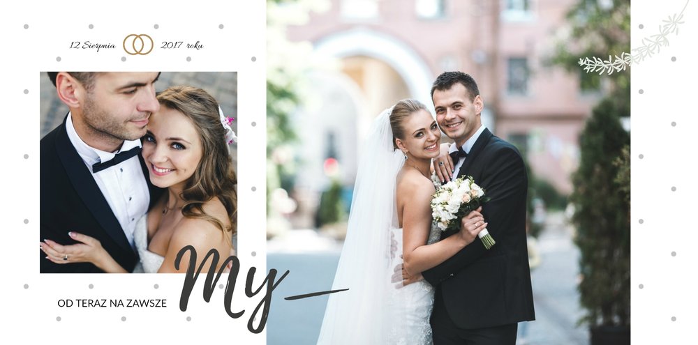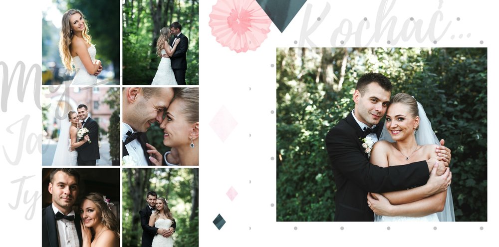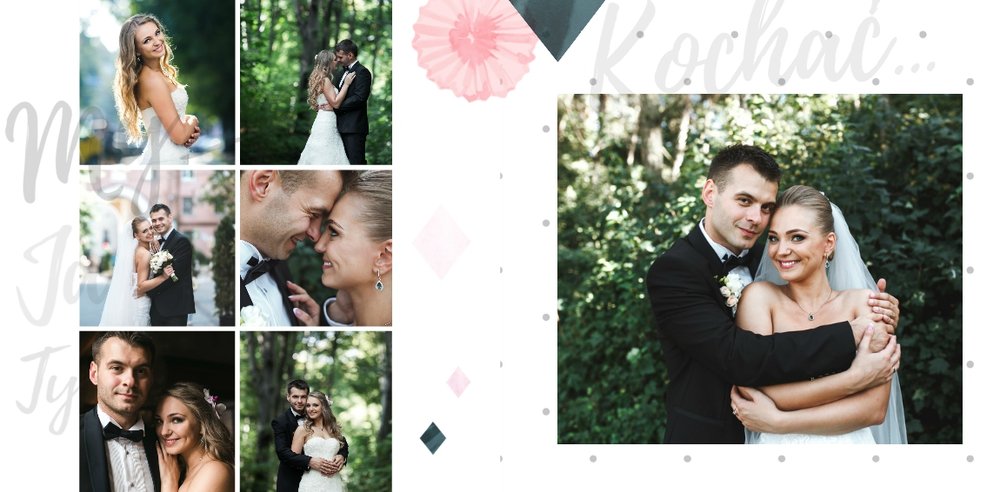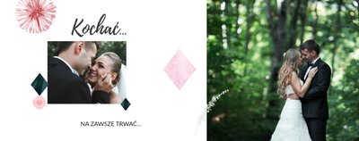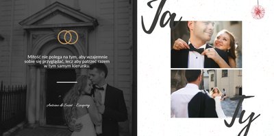 Album na zdjęcia ślubne to szablon, z którym zaprojektujesz wymarzoną fotoksiążkę z Waszego ślubu i wesela. Oryginalne dodatki, grafika i miłosne sentencje, dodatkowo urozmaicą ślubne fotografie. Spraw radość sobie i Twoim bliskim wyjątkową fotoksiążką. Wybierz najpiękniejsze zdjęcia z jednego z najważniejszych dni w Waszym życiu i zaprojektuj album z wesela.