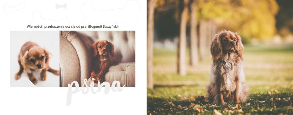 Album psiaka to szablon, z którym zaprojektujesz wyjątkową fotoksiążkę ze zdjęciami Twojego Psa. Stwórz piękną pamiątkę dla swojej rodziny, uwiecznij wszystkie chwile spędzone z przyjacielem i ciesz się oryginalną fotoksiążką przez wiele, wiele lat.