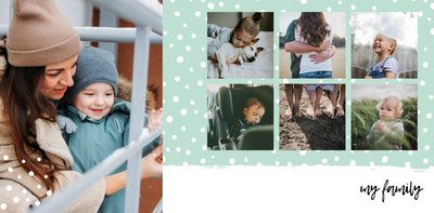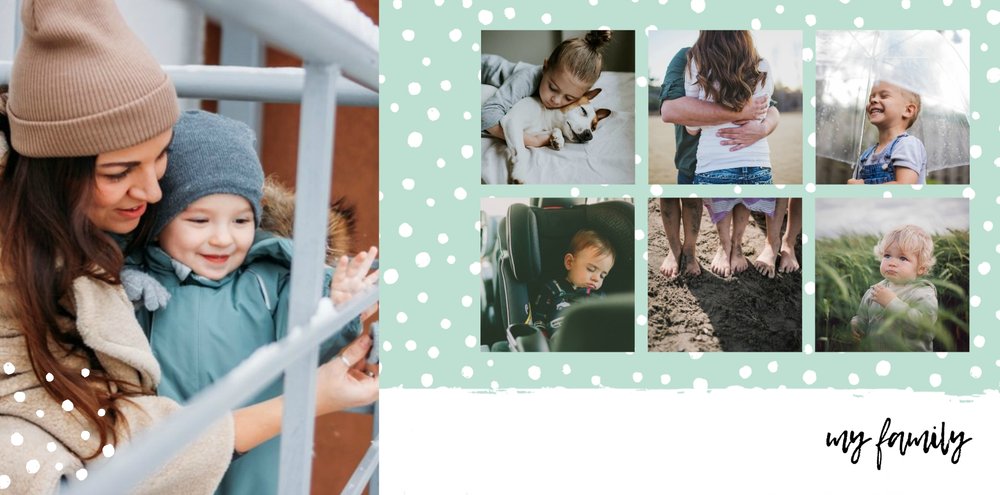 Album rodzinny to uniwersalny szablon z którym stworzysz wyjątkową, rodzinną fotoksiążkę, upamiętniającą wszystkie najważniejsze chwile z Waszego życia. Pastelowe kolory, dziecięca grafika, mnóstwo miejsca na zdjęcia oraz oryginalne teksty, sprawią, że Wasz rodzinny album będzie jedyny w swoim rodzaju.