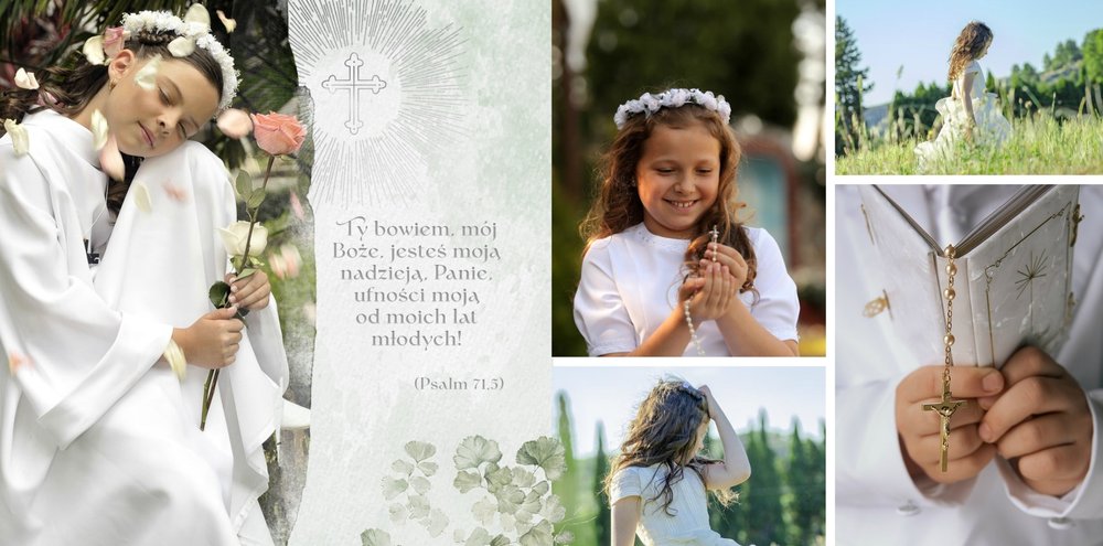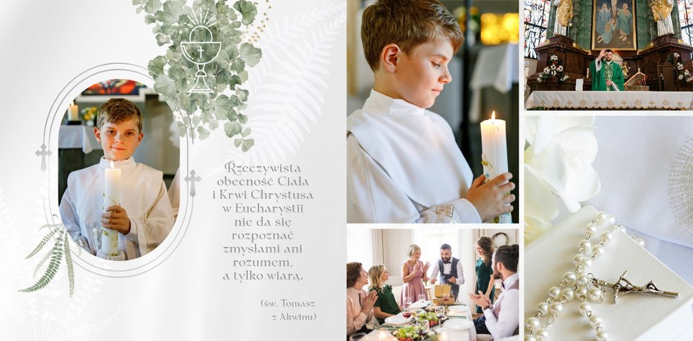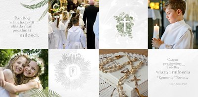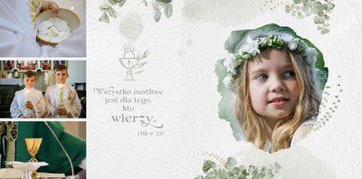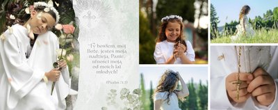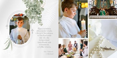 Pierwsza Komunia Święta to jeden z najważniejszych sakramentów dziecka. Stwórz uroczystą pamiątkę ze zdjęciami, korzystając z szablonu fotoksiążki "Album z Pierwszej Komunii Świętej" i zachowaj ważne wspomnienia dla siebie i bliskich.