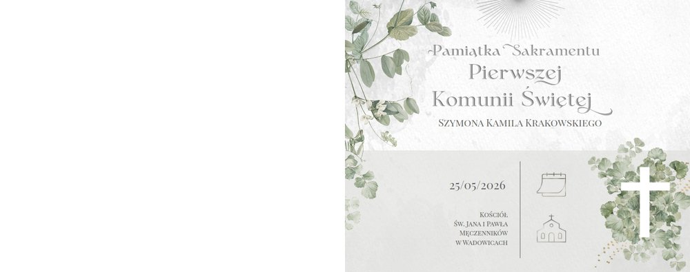 Każda strona została starannie zaprojektowana, by jak najlepiej oddać wzniosłą atmosferę sakramentu. Botaniczne wzory stanowią ozdobę zdjęć i podkreślają charakter ceremonii. Całość zachowana jest w odcieniach zieleni i srebra. Uniwersalny design sprawia, że fotoksiążka będzie świetnym upamiętnieniem zarówno sakramentu chłopca, jak i dziewczynki. Projekt został uzupełniony o sentencje z Pisma Świętego oraz cytaty i fragmenty Psalmów. Gotowe ułożenie elementów oraz układy komórek zdjęciowych zapewniają intuicyjne projektowanie. Możesz skorzystać ze spontanicznych zdjęć zrobionych telefonem, jak i tych profesjonalnych od fotografa.