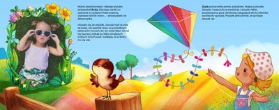 Jak wykonać personalizowaną książkę dla dziecka z bajką? Umieść zdjęcia swojej pociechy w ramkach, a następnie wpisz imię swojego malucha w wyznaczonych miejscach. Pamiętaj - na każdej ze stron powinno znaleźć się imię Twojego dziecka.