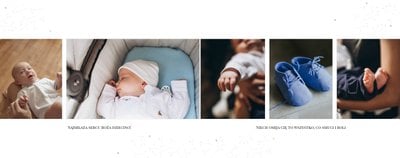 Przejdź do projektowania fotoksiążki na chrzest. Zdjęcia umieść w komórkach, a obok dodaj podpisy lub dedykację. Wybierając funkcję EKSPERT (Przeczytaj inspirację: Co to jest tryb ekspert? - klik!) w albumie na chrzciny możesz zmienić ustawienie komórek zdjęciowych, usuwać bądź dodawać elementy graficzne oraz określić pozycję napisów.