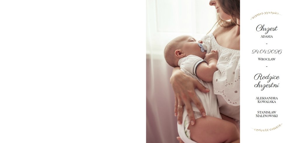 - Tradycyjny album na chrzciny, do którego należy wkleić wcześniej wywołane zdjęcia wymaga sporo zachodu. Fotoksiążka z chrztu świętego to rozwiązanie prostsze i szybsze. Bez wychodzenia z domu, w zaledwie kilkanaście minut zaprojektujesz piękny album na chrzest.