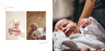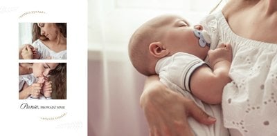 Szablon “Chrzciny” to uniwersalna propozycja albumu na chrzest dla chłopca i dla dziewczynki. Oprawa graficzna składa się z subtelnych zdobień, co podkreśla charakter pamiątki i współgra ze zdjęciami malucha. Dopełnienie stanowi biało-złota kolorystyka albumu - chrzest jednoznacznie się z nią kojarzy.