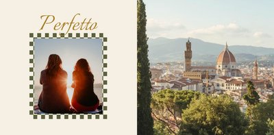 Zachowaj słoneczne wspomnienia ze swoich włoskich wakacji z szablonem fotoksiążki "Ciao Italia". Żywe kolory i minimalistyczne letnie motywy przeniosą Cię do ciepłych chwil spędzonych na klimatycznych uliczkach Mediolanu, Rzymu czy Wenecji. Ozdobne teksty jeszcze bardziej podkreślą ich włoski klimat. W prosty sposób stwórz niezapomnianą pamiątkę dla siebie i Twoich bliskich, wypełniając zdjęciami każdą stronę fotoksiążki "Ciao Italia". Nieważne czy był to krótki city break w mieście czy dłuższy urlop nad morzem - szablon będzie pasować do wszystkich typów zdjęć z wakacji. Uczyń Twoje włoskie wspomnienia jeszcze bardziej niezapomnianymi z szablonem fotoksiążki "Ciao Italia".