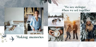 Uniwersalny charakter szablonu dodaje uroku każdego rodzaju zdjęciom. I to dlatego właśnie doskonale odnajdą się w nim nie tylko codzienne zdjęcia zebrane z minionego roku, ale również wspomnienia zimowego wyjazdu na narty czy romantycznego wypadu we dwoje. Nawet te zwykłe-niezwykłe momenty z przytulnych domowych czterech kątów, zachowane na stronach fotoksiążki z szablonem "Cold tones", nabiorą nowego znaczenia - szczególnie z upływem lat.