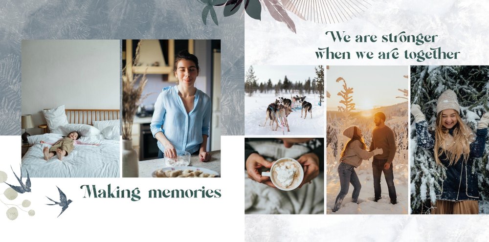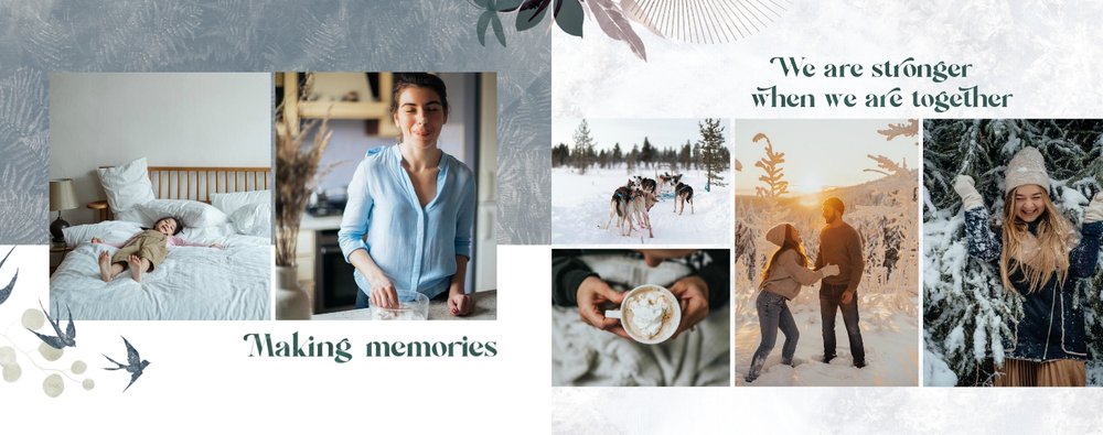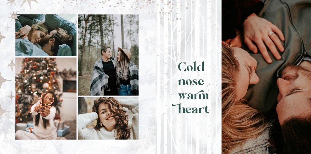 Uniwersalny charakter szablonu dodaje uroku każdego rodzaju zdjęciom. I to dlatego właśnie doskonale odnajdą się w nim nie tylko codzienne zdjęcia zebrane z minionego roku, ale również wspomnienia zimowego wyjazdu na narty czy romantycznego wypadu we dwoje. Nawet te zwykłe-niezwykłe momenty z przytulnych domowych czterech kątów, zachowane na stronach fotoksiążki z szablonem "Cold tones", nabiorą nowego znaczenia - szczególnie z upływem lat.