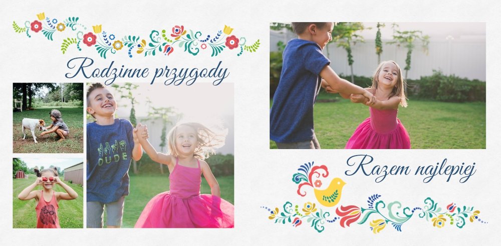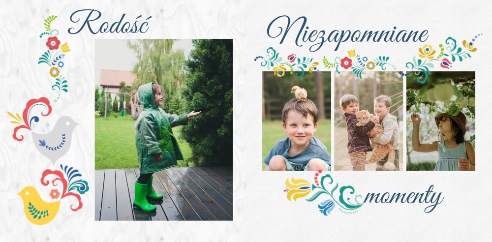 Uwielbiasz folklor? W takim razie ten szablon został stworzony specjalnie dla Ciebie! Z szablonem Cudawianki ozdobisz Twoje wyjątkowe fotografie o ludowe elementy i nadasz im drugie życie. Całość i urok Twoich zdjęć dopełnią białe tła i minimalistyczna forma szablonu. Wewnątrz szablonu znajdziesz także mnóstwo miejsca na uwiecznienie ważnych dla Ciebie momentów. Od teraz Twoje wspomnienia zachowane będą w pełnej koloru fotoksiążce. Możesz mieć pewność, że tak przygotowana fotoksiążka to gwarancja zachowania ulotnych momentów na dłużej.