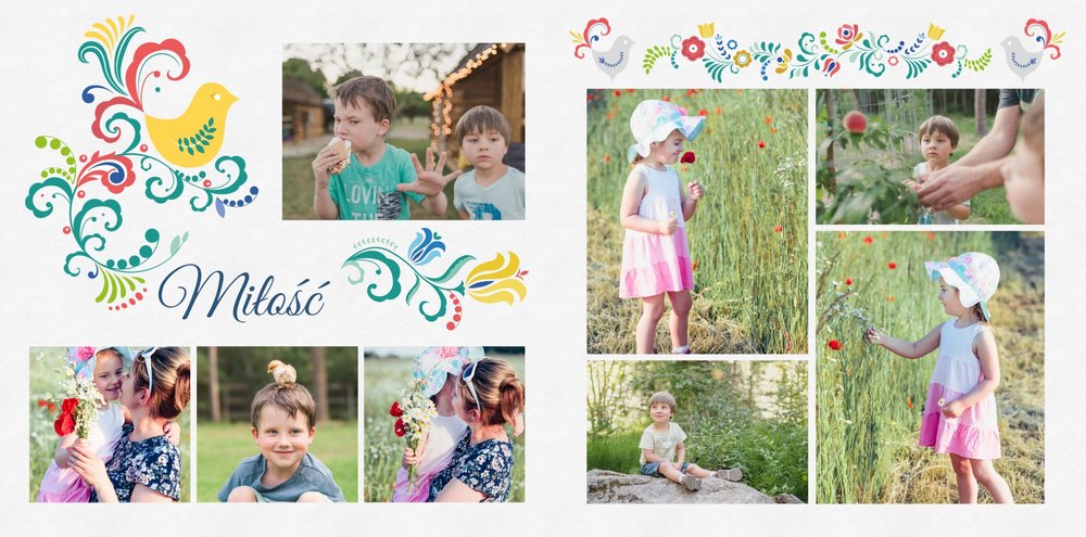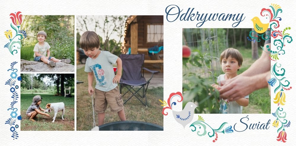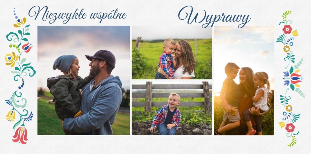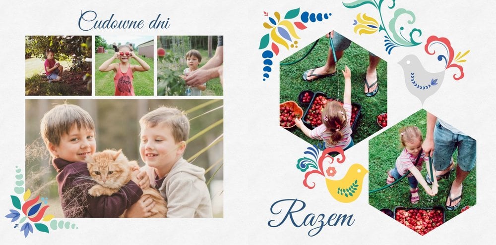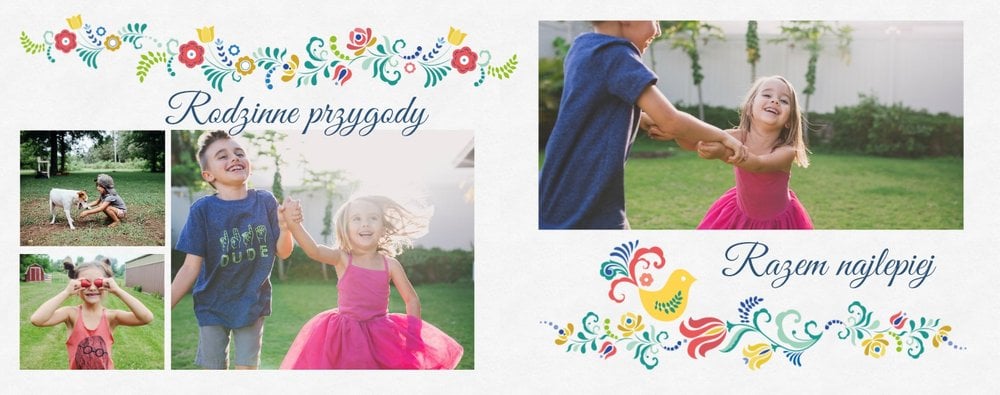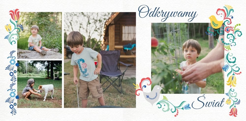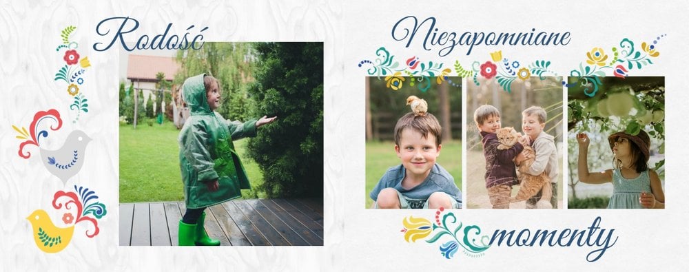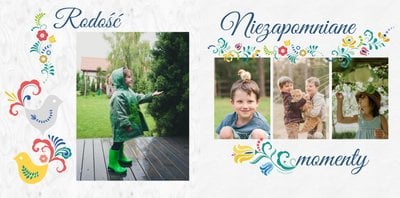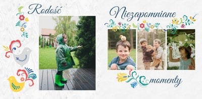 Uwielbiasz folklor? W takim razie ten szablon został stworzony specjalnie dla Ciebie! Z szablonem Cudawianki ozdobisz Twoje wyjątkowe fotografie o ludowe elementy i nadasz im drugie życie. Całość i urok Twoich zdjęć dopełnią białe tła i minimalistyczna forma szablonu. Wewnątrz szablonu znajdziesz także mnóstwo miejsca na uwiecznienie ważnych dla Ciebie momentów. Od teraz Twoje wspomnienia zachowane będą w pełnej koloru fotoksiążce. Możesz mieć pewność, że tak przygotowana fotoksiążka to gwarancja zachowania ulotnych momentów na dłużej.