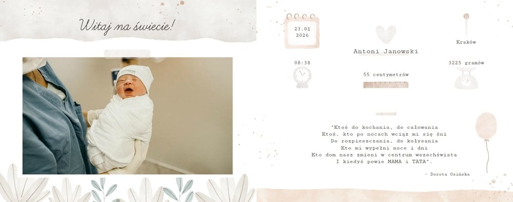Fotoksiążka z szablonem "Czekając na narodziny" to świetna pamiątka nie tylko dla rodziców, ale i nowo narodzonego dzidziusia. Zbiór zdjęć z okresu ciąży to bezcenna skarbnica wspomnień dla dziecka i przyszłych pokoleń.