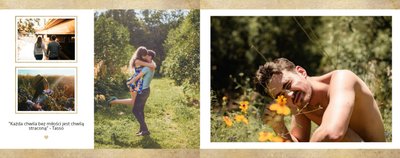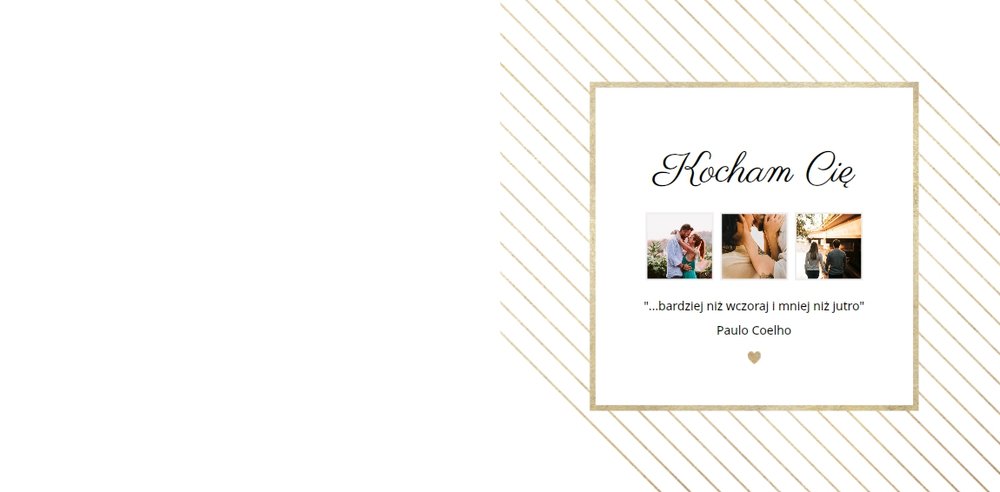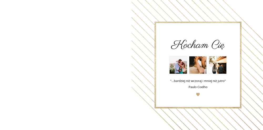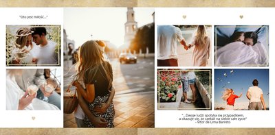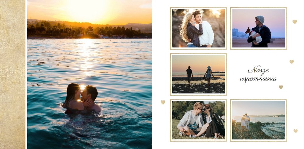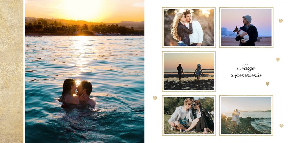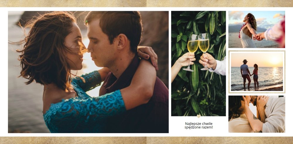 Szablon Dla Ciebie może być idealnym prezentem na urodziny, Walentynki czy zupełnie bez okazji dla Tej Najważniejszej Osoby w Twoim życiu. Stanowi dobrą pamiątkę wspólnie spędzonych chwil, romantycznych wakacji tylko we dwoje czy sesji narzeczeńskiej. Minimalistyczne tła ze złotymi motywami odpowiednio wyeksponują Twoje zdjęcia. Inne szablony z tej serii: Ona i On (szablon ślubny) i Dla naszych Rodziców (podziękowania dla rodziców).