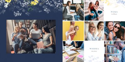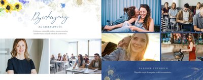 Szablon fotoksiążki "Dla najlepszego wychowawcy" to elegancki i pełen kwiatowych akcentów projekt graficzny, który zawiera miejsca na najlepsze szkolne ujęcia, dedykacje, słowa wdzięczności i odręczne podpisy wszystkich uczniów. Wewnątrz znajdziesz także miejsce na galerię zdjęć wszystkich uczniów!