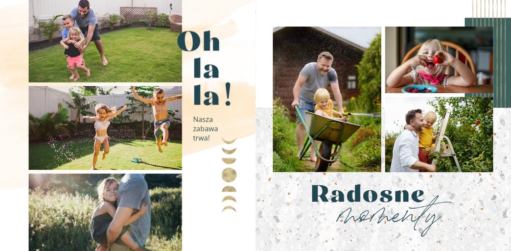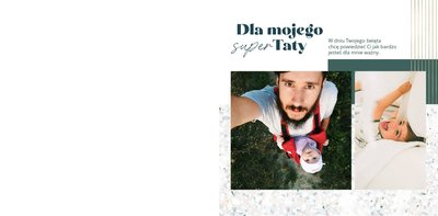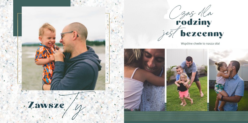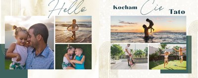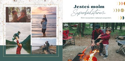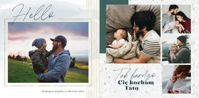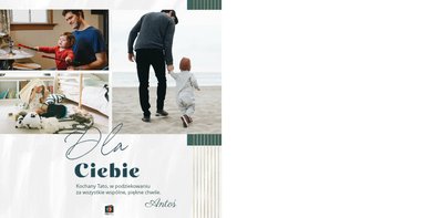 "Dla Super Taty" - szablon, dzięki któremu Twoja fotoksiążka stanie się wyszukaną i pełną emocji laurką z okazji Dnia Taty. Zamknięte w jej wnętrzu fotografie pozwolą przywołać zapomniane chwile. Ten oryginalny szablon sprawdzi się jako pamiątka i wyraz wdzięczności dla ukochanego Taty, ale także jako prezent dla świeżo upieczonego Ojca. Wyczystko zależy od tego, jakie zdjęcia zamieścisz wewnątrz fotoksiążki.