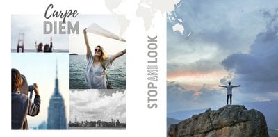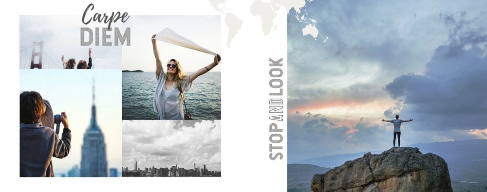 Spełniłeś marzenie i odwiedziłeś upragnione miejsce na świecie? Przeżyłeś wakacje życia? Nic straconego! Dzięki fotoksiążce z szablonem Dookoła świata Twoja podróż wiecznie będzie żywa. Choćby w Twoich wspomnieniach! Zachowaj najpiękniejsze kadry wewnątrz tego minimalistycznego szablonu i ciesz się wakacyjnymi wspomnieniami przez cały rok. Całość dopełnią graficzne napisy w odcieniach szarości i czerni - niech kolory Twoich wspomnień zabarwią fotoksiążkę. Tak przygotowana fotoksiążka będzie pamiątką na całe lata!
