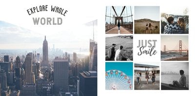 Spełniłeś marzenie i odwiedziłeś upragnione miejsce na świecie? Przeżyłeś wakacje życia? Nic straconego! Dzięki fotoksiążce z szablonem Dookoła świata Twoja podróż wiecznie będzie żywa. Choćby w Twoich wspomnieniach! Zachowaj najpiękniejsze kadry wewnątrz tego minimalistycznego szablonu i ciesz się wakacyjnymi wspomnieniami przez cały rok. Całość dopełnią graficzne napisy w odcieniach szarości i czerni - niech kolory Twoich wspomnień zabarwią fotoksiążkę. Tak przygotowana fotoksiążka będzie pamiątką na całe lata!