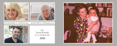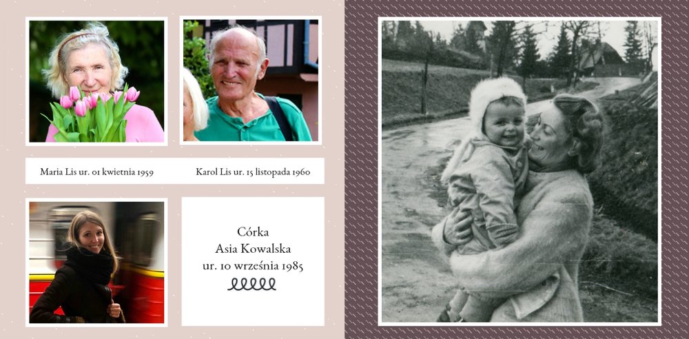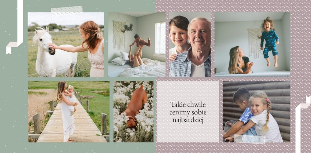 Szablon Drzewo Genealogiczne to świetna propozycja dla całej rodziny. Dzięki niemu możesz w łatwy sposób stworzyć fotoksiążkę z rodzinnymi historiami i zdjęciami pamiętającymi jeszcze czasy pradziadków. Pastelowe kolory tła, wiele miejsca na wspólne fotografie oraz miejsce na fascynujące, rodzinne historie i opowiadania, dodadzą niezwykłego charakteru książce. Z tym szablonem stworzysz piękną pamiątkę rodzinną na lata.