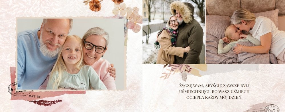 Fotoksiążka "Dzień Babci i Dziadka" to idealny prezent, aby zatrzymać czas i pozwolić naszym Dziadkom przeżywać wszystkie wspaniałe chwile na nowo. Wypełnij ją rodzinnymi fotografiami, pamiątkowymi zdjęciami swojego dziecka, a także masą czułości.