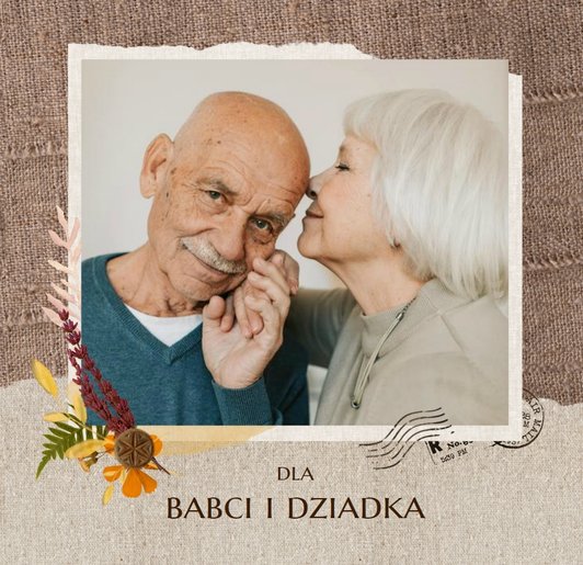 Fotoksiążka "Dzień Babci i Dziadka" zaprojektowana została w tradycyjnym, ozdobnym stylu, nawiązującym do naturalnych elementów oraz swojskich klimatów. Elementy graficzne - takie jak kwiaty, stemple, kawałki pergaminu czy woskowe pieczęcie - podkreślą urok każdego zdjęcia z Babcią i Dziadkiem. Specjalnie dobrana paleta kolorów, składająca się z zieleni, brudnego różu, beży i brązów, nada całości wyjątkowy charakter.
