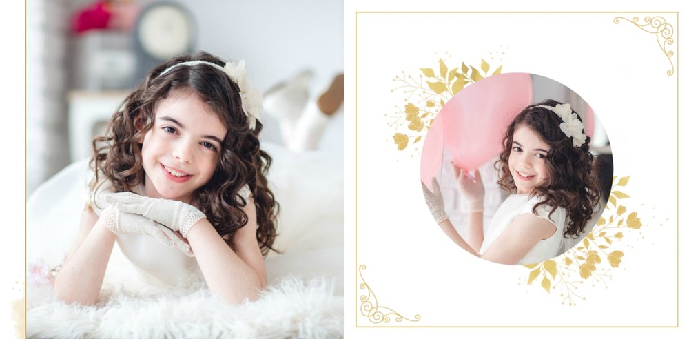 Jeśli pragniesz stworzyć fotoksiążkę upamiętniającą przyjęcie Sakramentu Pierwszej Komunii Świętej to idealnie w tej roli spełni się szablon Dzień Komunii Świętej. Dzięki niemu zaprojektujesz wyjątkową fotopamiątkę z jednego z najważniejszych dni w życiu Dziecka. Całość szablonu utrzymana jest w bieli z nutą złotych elementów graficznych. Jego minimalistyczna i elegancka forma sprawia, że zdjęcia stają się najważniejsze. Na stronach znajdziesz także komunijne sentencje. Wystarczy, że szablon uzupełnisz o informacje i fotografie.