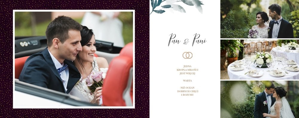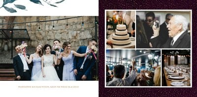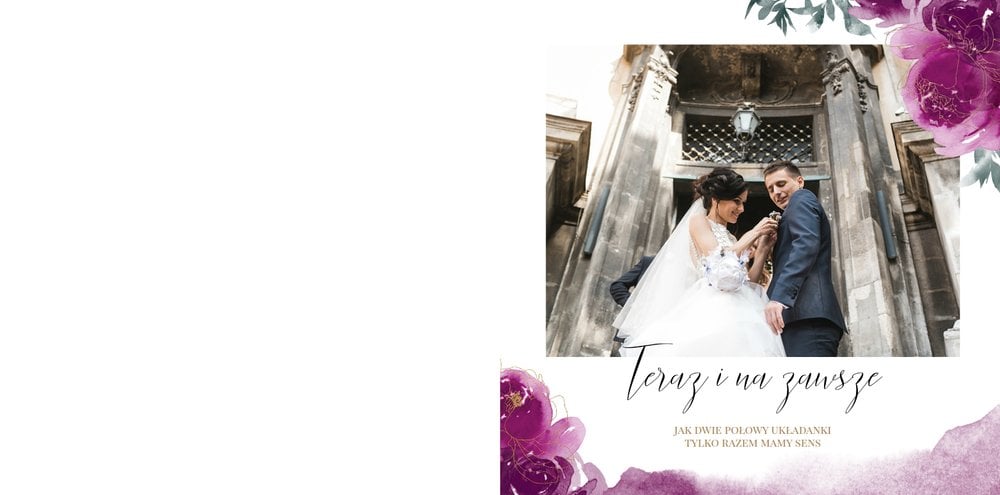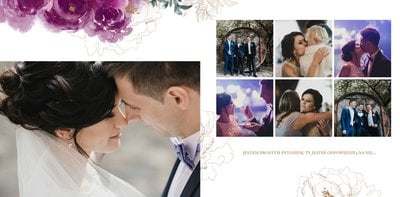 Kwiaty to elementy, które towarzyszą każdej ceremonii zaślubin i wesela. Jednocześnie są eleganckie, jak i uniwersalne, przez co idealnie pasują do wesela rustykalnego, folkowego, czy w stylu glamour. Fotoksiążka z szablonem "Elegancki ślub" sprawdzi się jako pamiątka z dnia ślubu - podkreśli najważniejsze chwile, a także tańczących do rana gości i momenty z ceremonii w kościele.