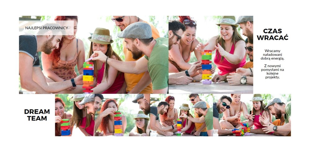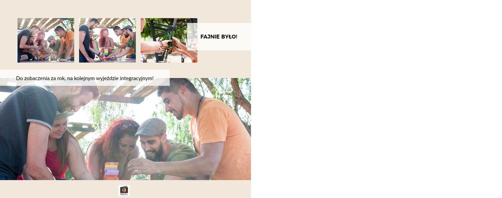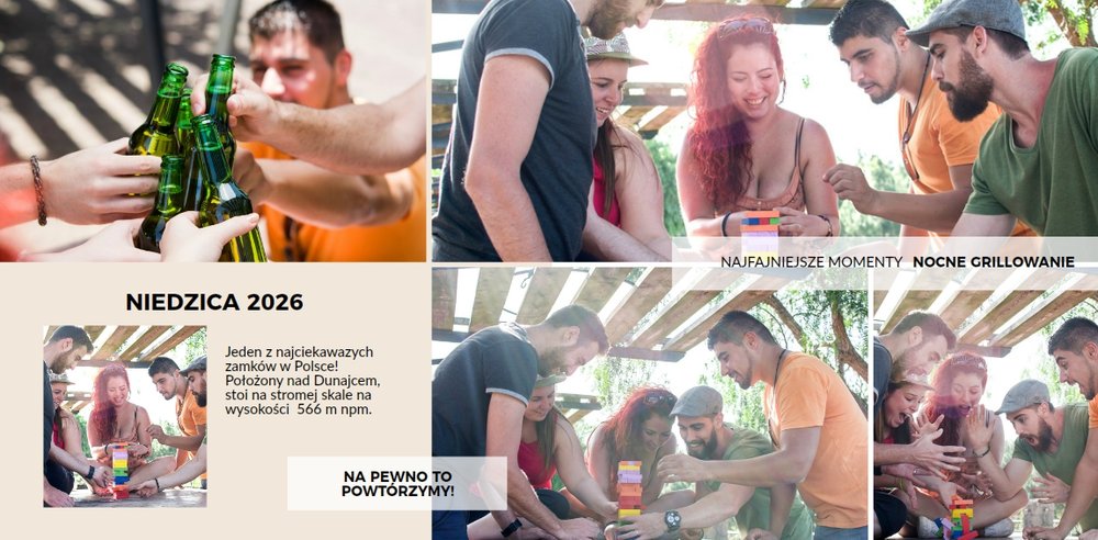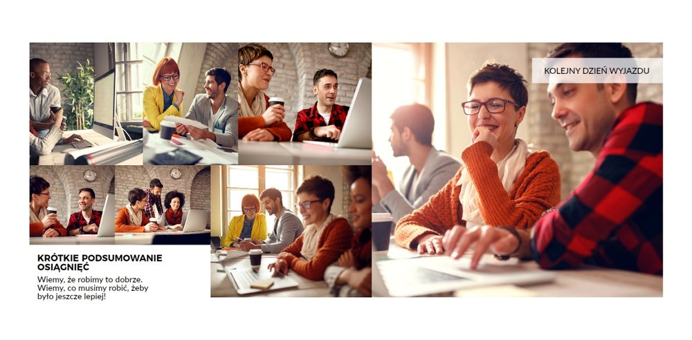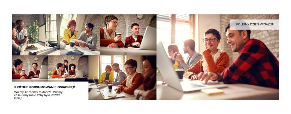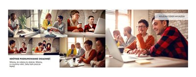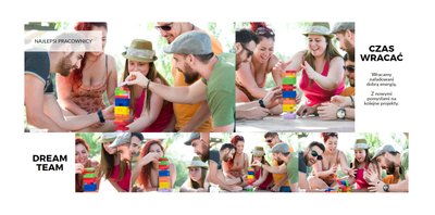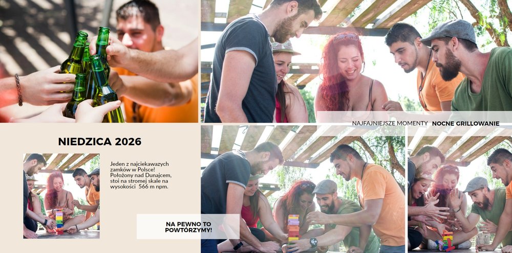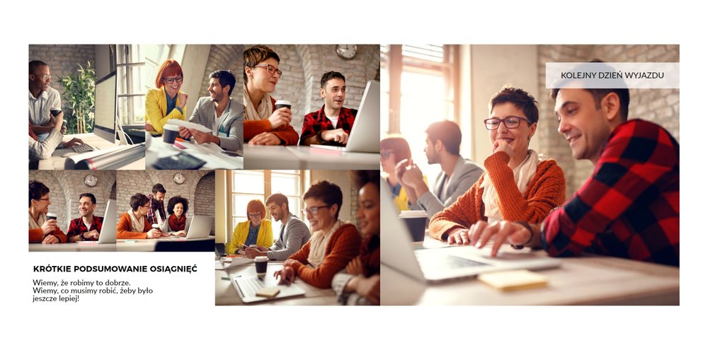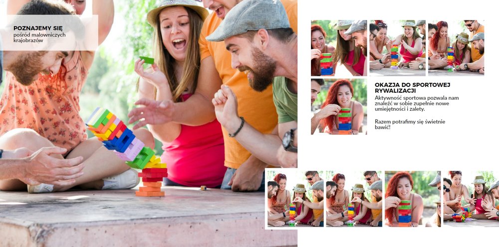 Z szablonem Firmowy wyjazd integracyjny zaprojektujesz fotoksiążkę z dowolnego wyjazdu firmowego! Zachowaj niezapomniane chwile w książce Printu, zaprojektuj pamiątkę dla firmy i jej pracowników. Sprawdź ile możliwości daje Ci szablon i stwórz wyjątkową fotoksiążkę z najlepszymi zdjęciami z wyjazdu integracyjnego.