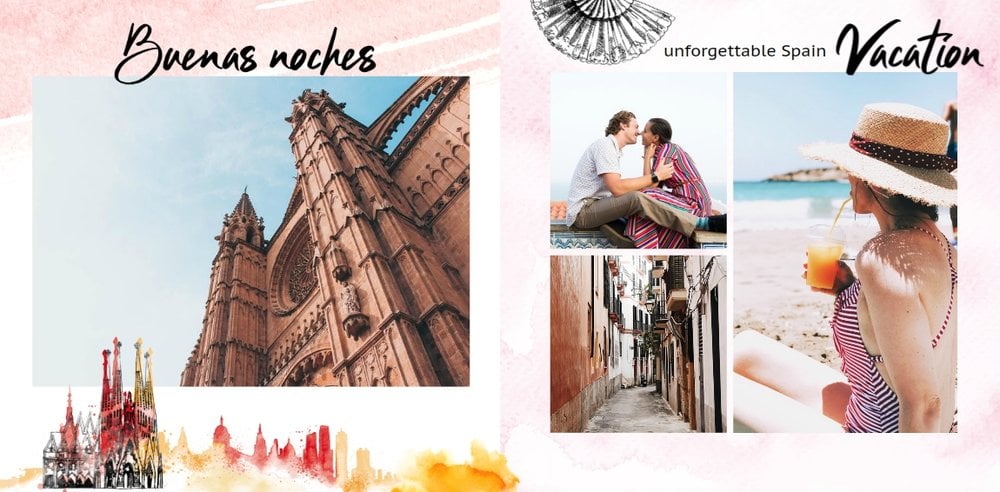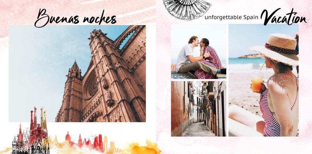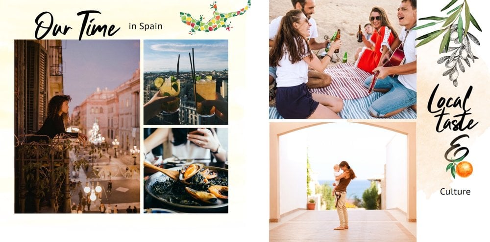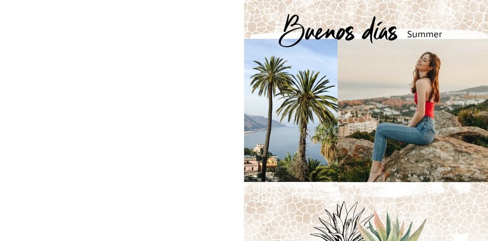 Wakacje w Hiszpanii uważasz za udane? Świetnie! Zadbaj o każdy moment i zaprojektuj oryginalną fotoksiążkę, w której przechowasz wszystkie najważniejsze dla Ciebie momenty. Szablon Hola, hola to minimalistyczna propozycja, w którą idealnie wkomponujesz Twoje hiszpańskie kadry. Wewnątrz szablonu znajdziesz charakterystyczne grafiki, napisy oraz nowoczesne elementy graficzne - to one dopełnią Twoje zdjęcia i nadadzą niepowtarzalnego efektu. Uzupełnij szablon i ważne dla Ciebie chwile, napisy i stwórz niezwykłą pamiątkę na całe życie.