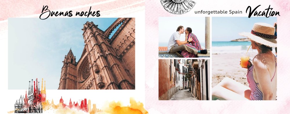 Wakacje w Hiszpanii uważasz za udane? Świetnie! Zadbaj o każdy moment i zaprojektuj oryginalną fotoksiążkę, w której przechowasz wszystkie najważniejsze dla Ciebie momenty. Szablon Hola, hola to minimalistyczna propozycja, w którą idealnie wkomponujesz Twoje hiszpańskie kadry. Wewnątrz szablonu znajdziesz charakterystyczne grafiki, napisy oraz nowoczesne elementy graficzne - to one dopełnią Twoje zdjęcia i nadadzą niepowtarzalnego efektu. Uzupełnij szablon i ważne dla Ciebie chwile, napisy i stwórz niezwykłą pamiątkę na całe życie.