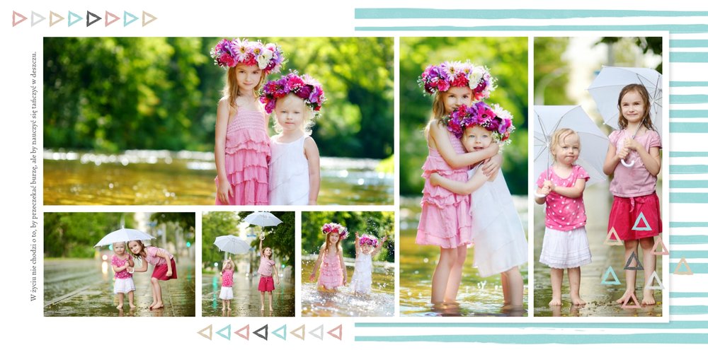 Szablon Jak dobrze, że jesteś dedykowany jest tym, którzy uwielbiają rodzinne spotkania i wspólne zdjęcia. To idealne miejsce na piękne wspomnienia i momenty warte zatrzymania na dłużej. Dzięki fotoksiążce zaprojektowanej przy użyciu tego szablonu, w każdej chwili powrócisz do pięknych chwil spędzonych razem z bliskimi. Zdecydowaliśmy się na białe tła i delikatne dodatki w kolorach pastelowych. Szablon typu "everyday life", nadający się na wiele okazji. Strony możesz dowolnie modyfikować, aby stworzyć spersonalizowaną fotoksiążkę.