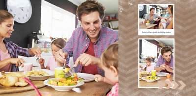 "Keep calm" to szablon typu "everyday life", który nadaje się na wiele okazji. Piękna oprawa graficzna, uzupełniona ulubionymi kadrami i napisami będzie stanowić piękną pamiątkę lub prezent dla bliskiej osoby. W szablonie przeważają ciemne i stonowane kolory: brązowy, niebieski i bordowy, które zostały przełamane pastelowymi dodatkami. Keep calm i zaprojektuj piękną fotoksiążkę!