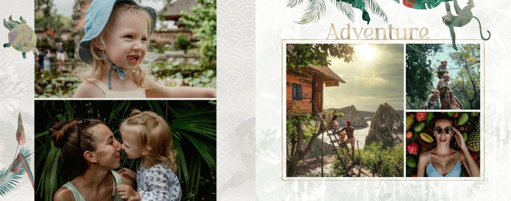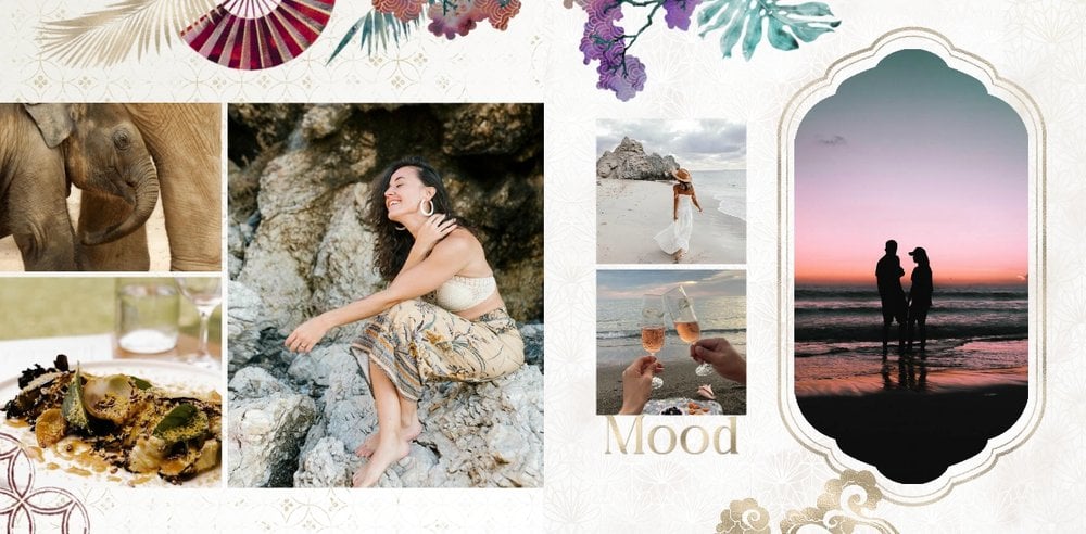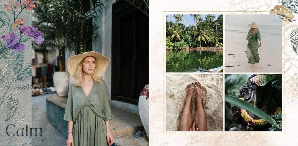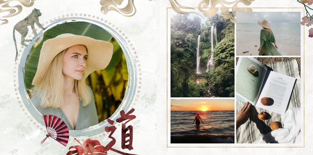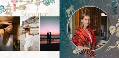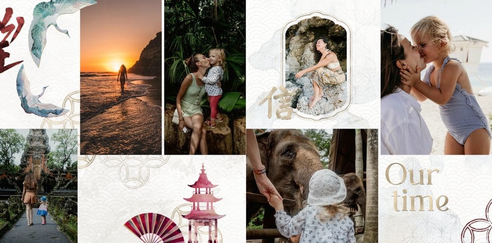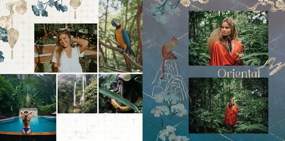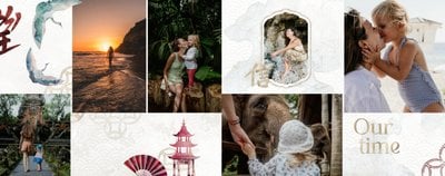 Szablon "Kierunek Azja" jest w pełni edytowalny - możesz dodawać bądź usuwać komórki zdjęciowe i elementy ozdobne oraz zmieniać tła poszczególnych stron. Daj się ponieść wodze fantazji - poczuj orient raz jeszcze, tworząc niezwykłą pamiątkę ze swoich niepowtarzalnych wakacji.