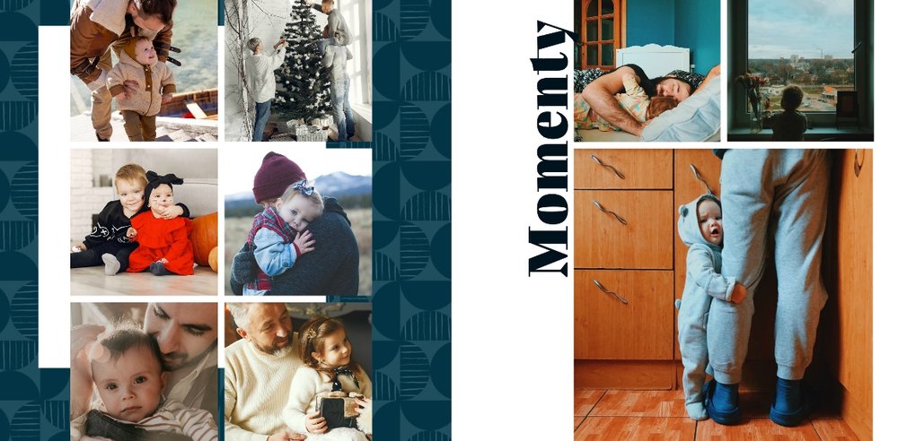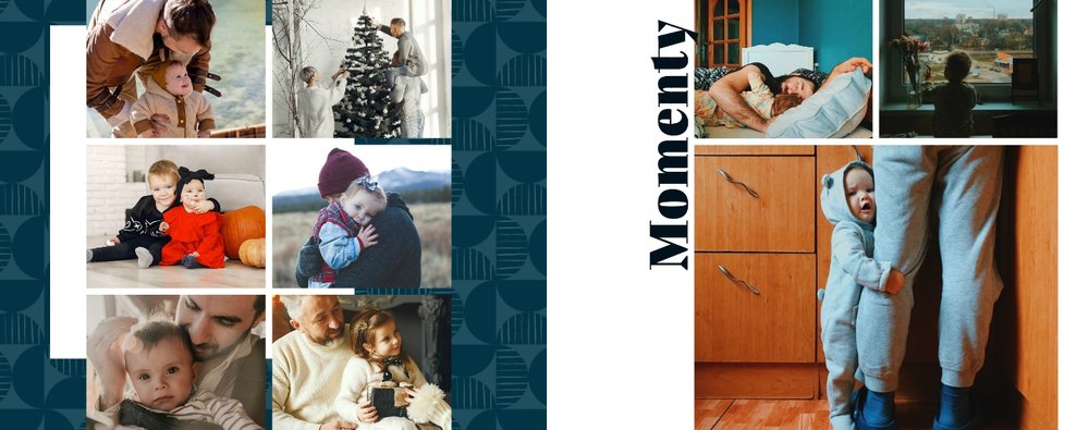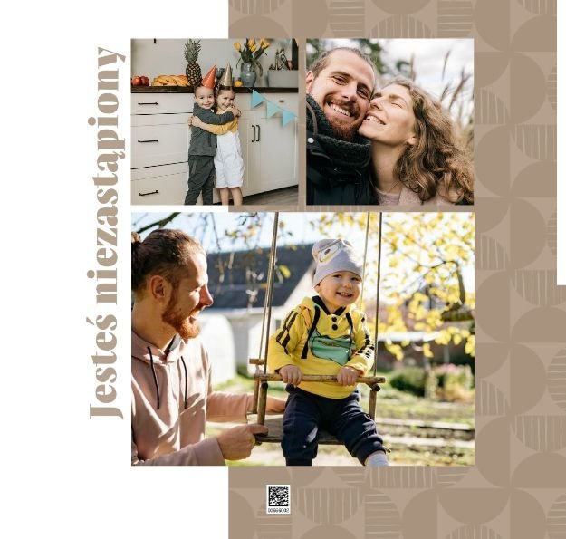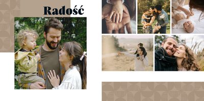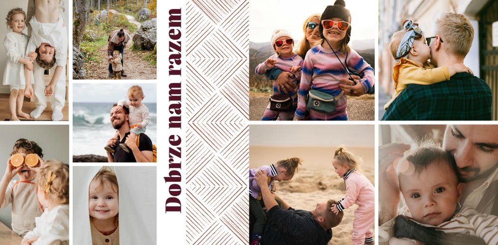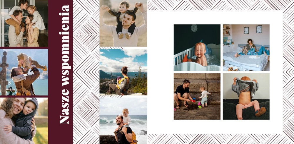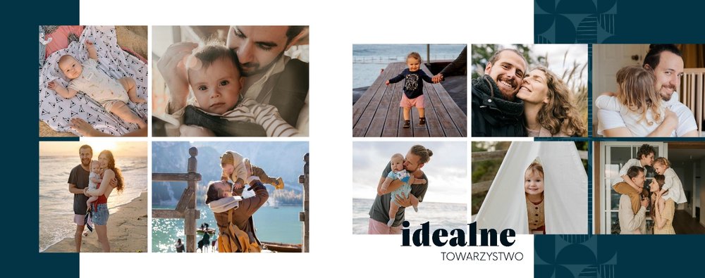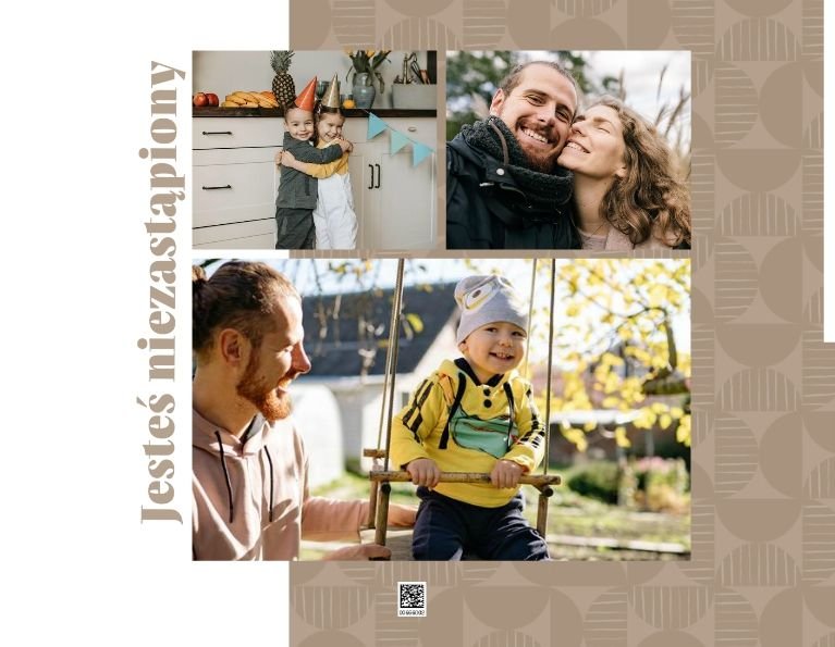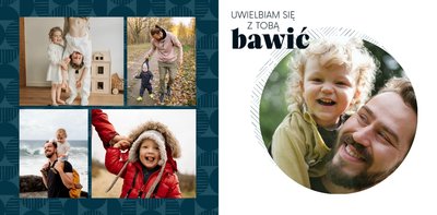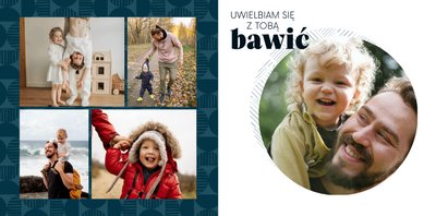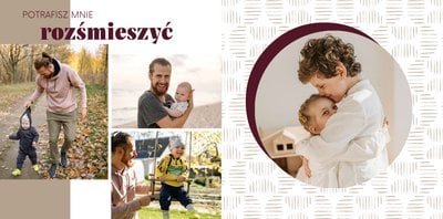 Szablon "Kocham Cię Tato" to nowoczesna propozycja aranżacji Waszych najlepszych ujęć wśród geometrycznych wzorów i krótkich tekstów. Miejsc na zdjęcia jest sporo - to one odgrywają w końcu główną rolę. Zabawne i chwytające za serce frazy stanowią uzupełnienie i podkreślenie relacji, jaka łączy Ojca z dzieckiem.