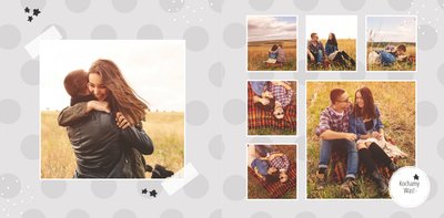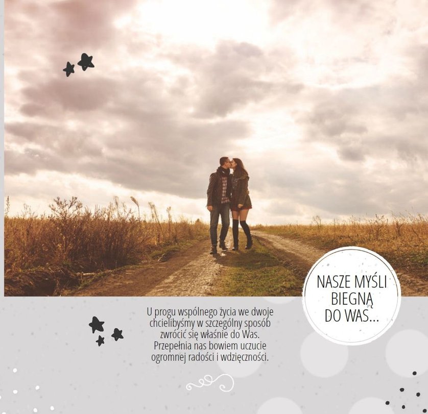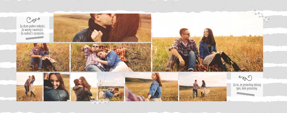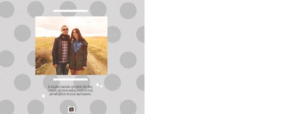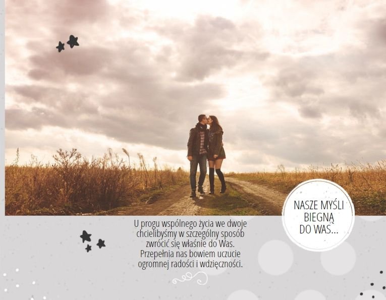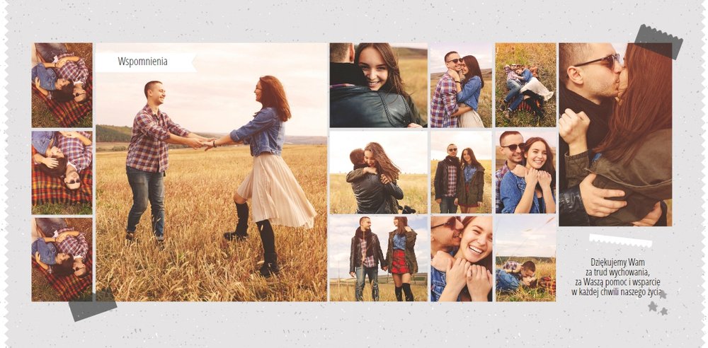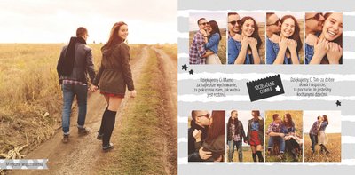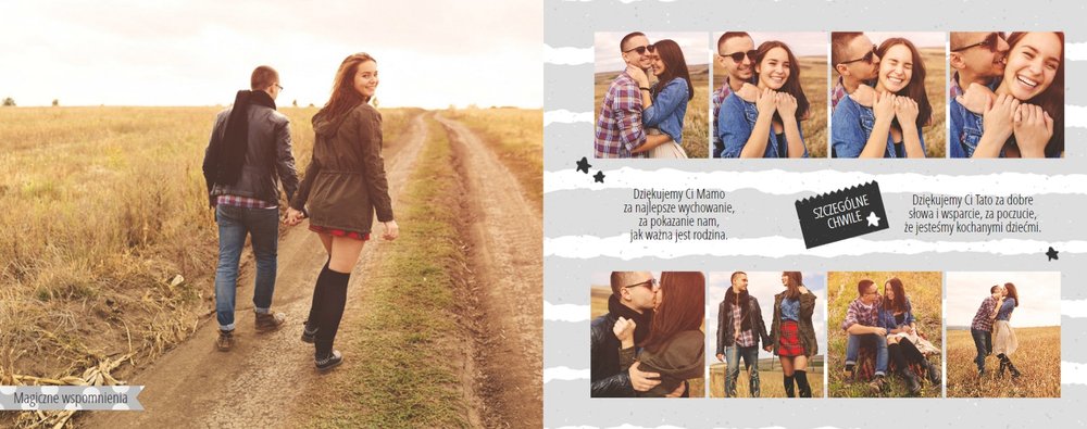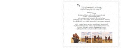 Podziękowanie dla rodziców to ważny moment na każdym weselu. Wiele par szuka pomysłu na gustowny i niepowtarzalny prezent dla rodziców. Zdjęcia szczęśliwych latorośli będą z pewnością pięknym i ponadczasowym upominkiem. Szablon “Kochanym Rodzicom” idealnie sprawdzi się jako wyraz wdzięczności za miłość i trud wychowania. Książka pozostaje w delikatnych odcieniach bieli i szarości, dodatkowo ozdabiają ją drobne elementy w postaci tasiemek i ramek. Z tym szablonem zaprojektujesz oryginalne podziękowania dla rodziców.