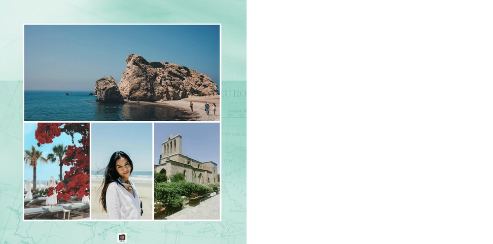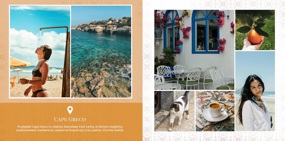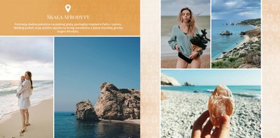 Przygotuj zdjęcia z wakacji i zapisz swoje wspomnienia w kolejnym szablonie fotoksiążki z kolekcji podróżniczej, stworzonym w duchu słonecznego Cypru.