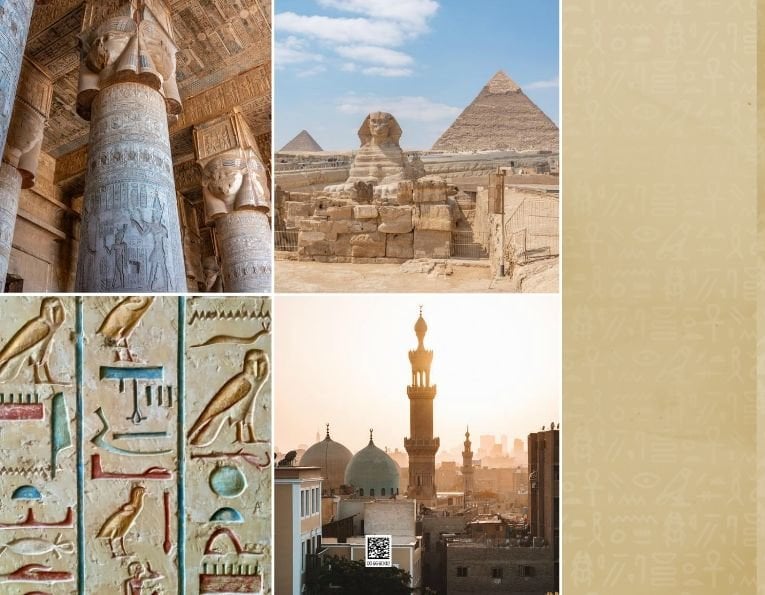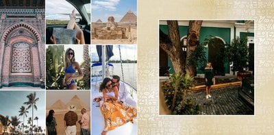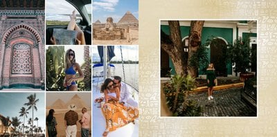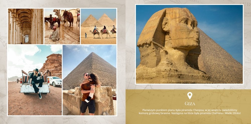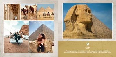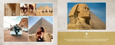 Odkryj szablon fotoksiążki z kolekcji podróżniczej, stworzony w duchu starożytnego Egiptu.