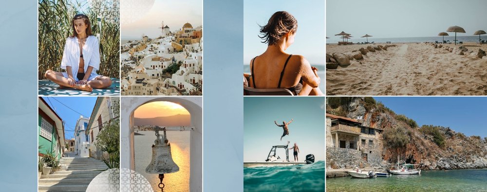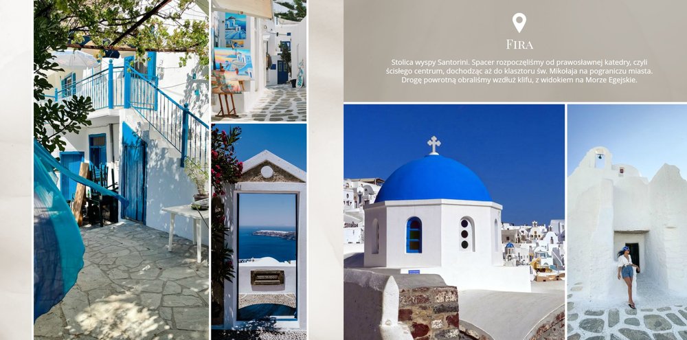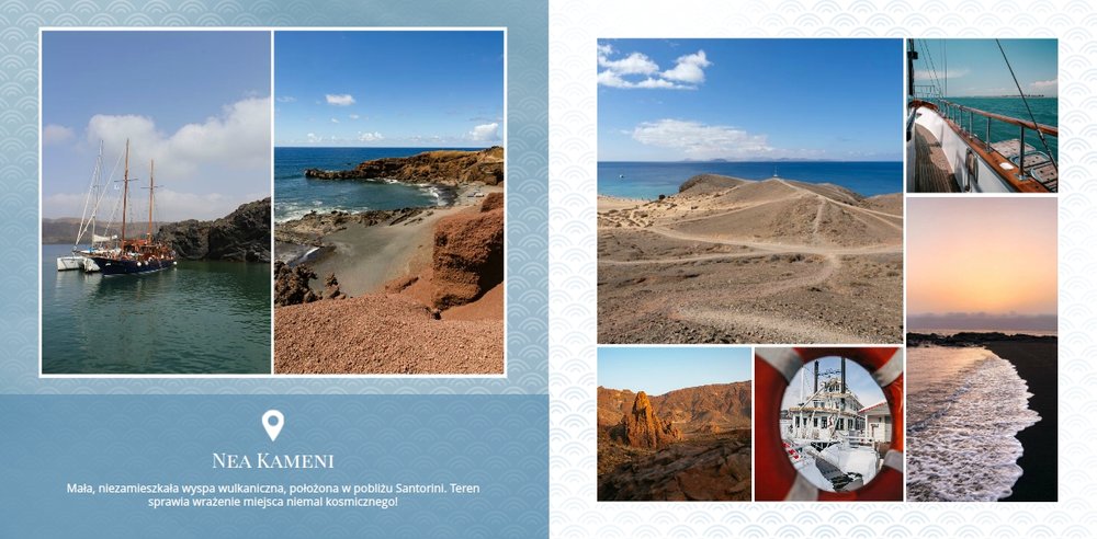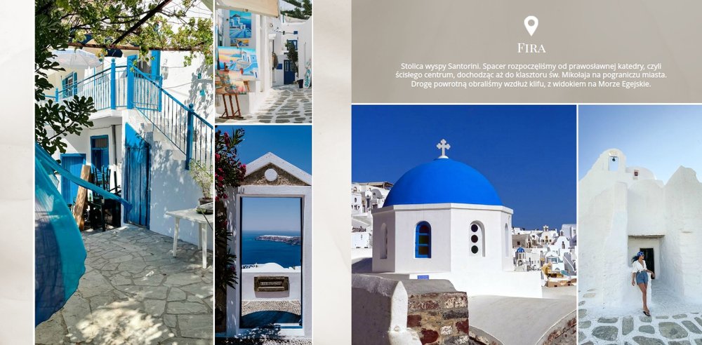 Biel fasad, intensywnie niebieskie kopuły i różowe bugenwille to doskonale znane widoki dla każdego, kto choć raz udał się do Grecji. W szablonie "Kolekcja podróżnicza - Grecja" dominują przygaszone beże i błękity, które idealnie podkreślają urok zdjęć obfitych w greckie krajobrazy, słoneczne ujęcia plaż oraz turkus mórz. Każdy szablon serii podróżniczej posiada minimalistyczną budowę oraz mocno ograniczoną liczbę dodatków, jednak nie brak w nich charakterystycznych dla danego kraju symboli. Ponadto w każdym motywie znajdziesz miejsce na opisy wycieczek, najbardziej charakterystycznych miejsc, czy swoich przemyśleń.