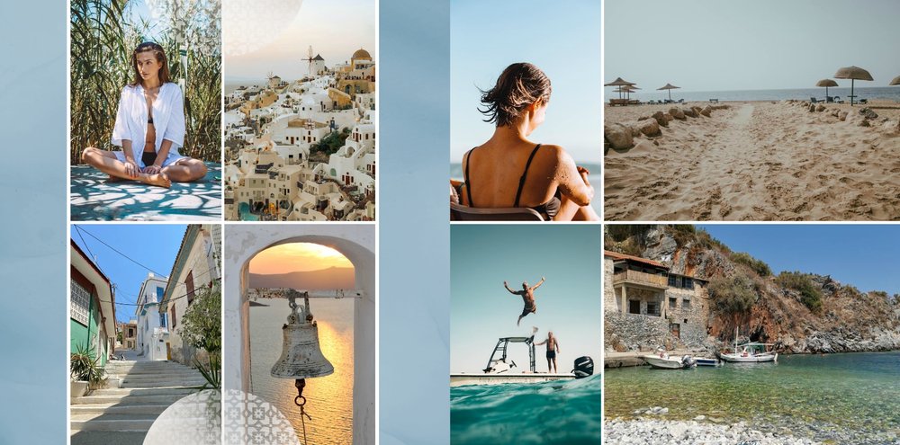 Odkryj szablon fotoksiążki z kolekcji podróżniczej, zaprojektowany w stylu greckim. Zachowaj swoje wspomnienia w projekcie, który stanie się najlepszą formą pamiątki z Twojego wyjazdu.