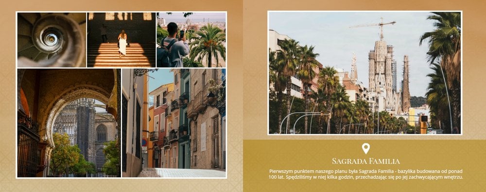 Odkryj szablon fotoksiążki z kolekcji podróżniczej, stworzony z myślą o słonecznej Hiszpanii.