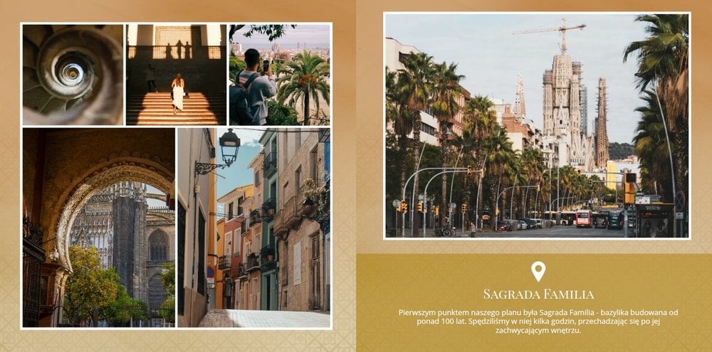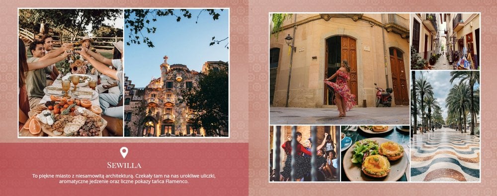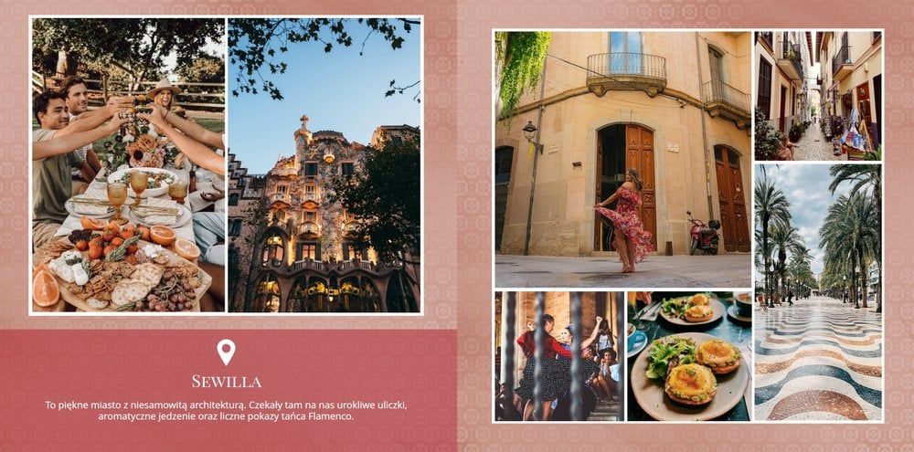 Odkryj szablon fotoksiążki z kolekcji podróżniczej, stworzony z myślą o słonecznej Hiszpanii.