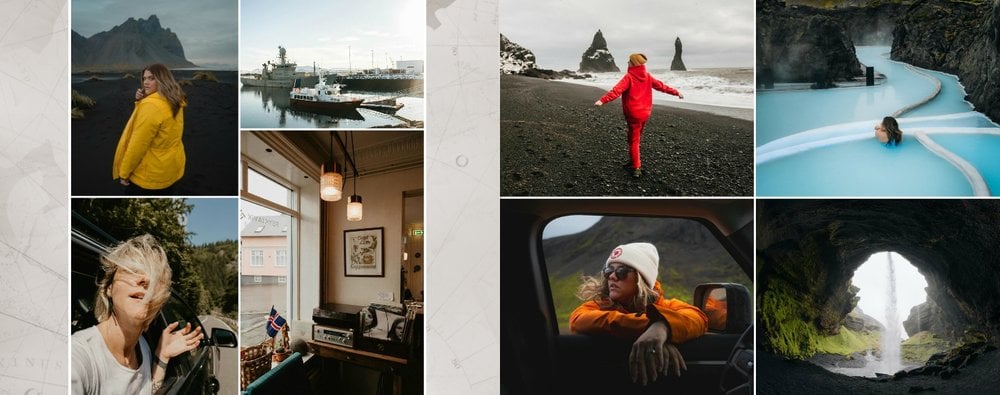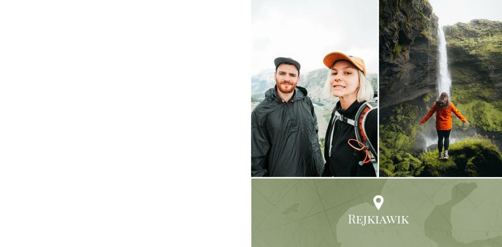Paleta kolorystyczna szablonu nawiązuje do natury oraz nordyckiego klimatu. Subtelne wzory na stronach projektu tworzą idealne tło Twoich zdjęć, podkreślając wyjątkowe chwile z podróży na Islandię.