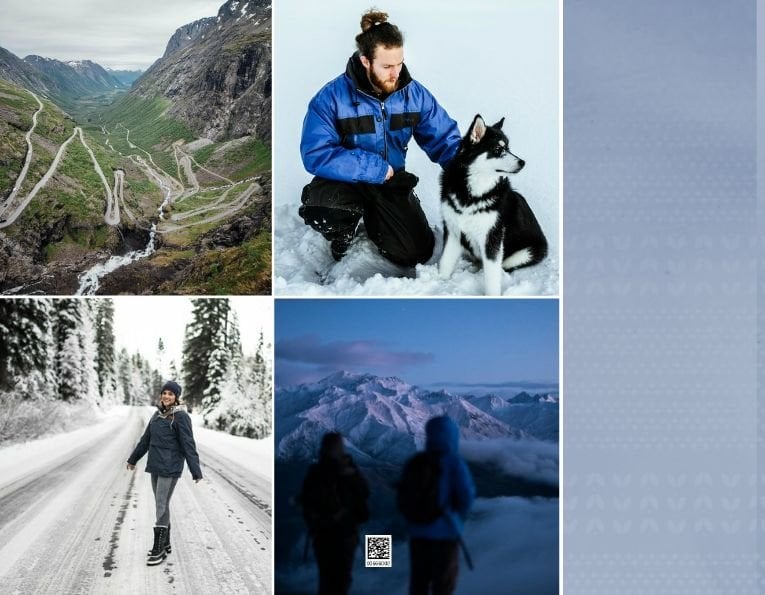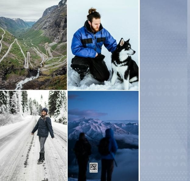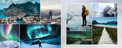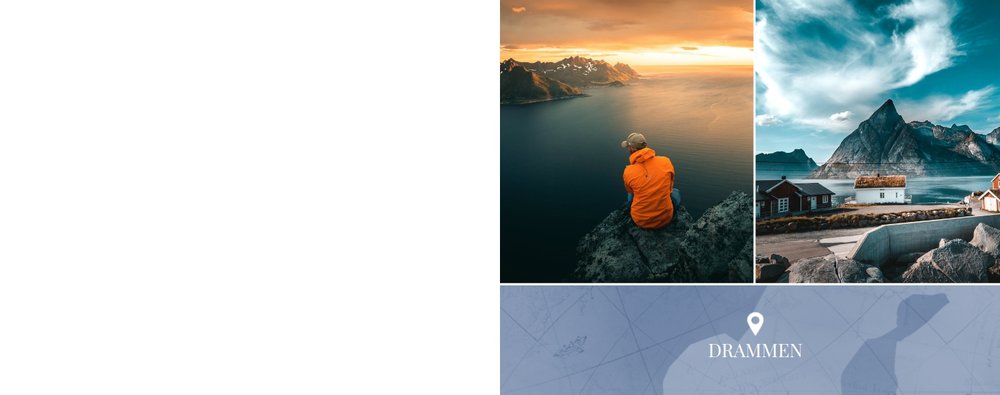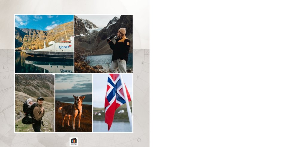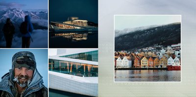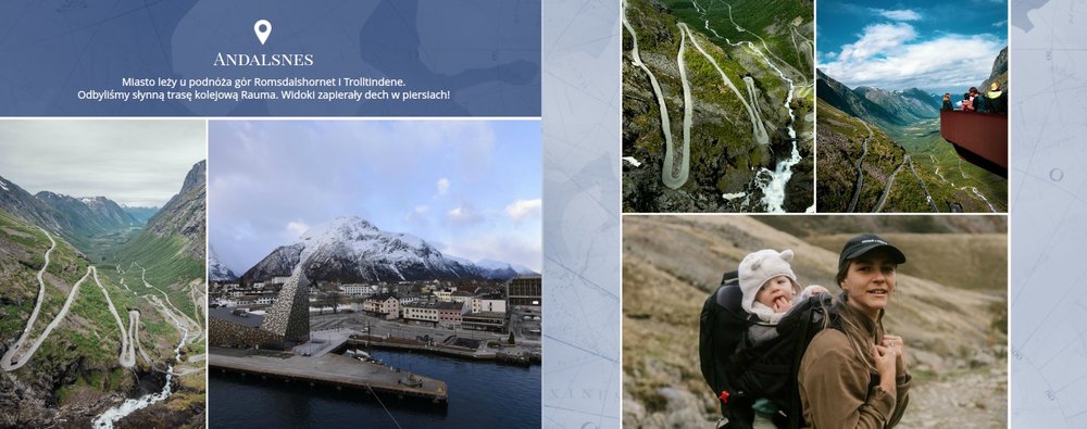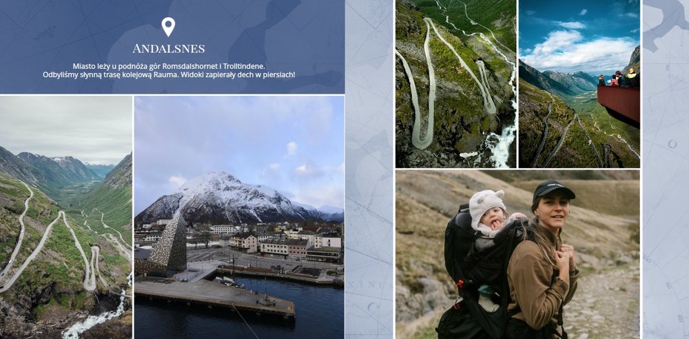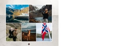 Paleta kolorystyczna szablonu nawiązuje do natury i współgra z chłodnym skandynawskim klimatem. Subtelne wzory na stronach projektu tworzą idealne tło Twoich zdjęć z podróży do Norwegii.