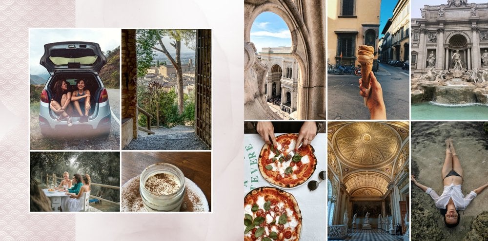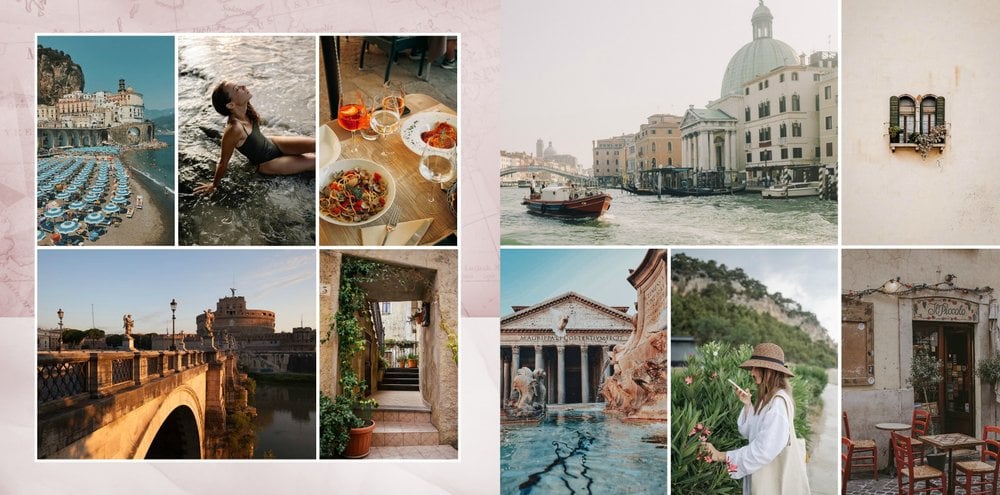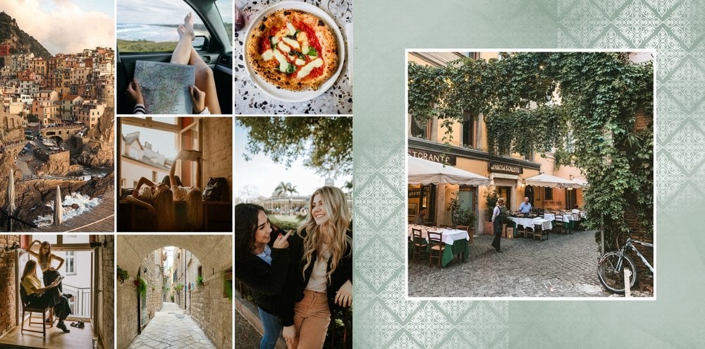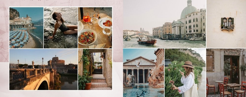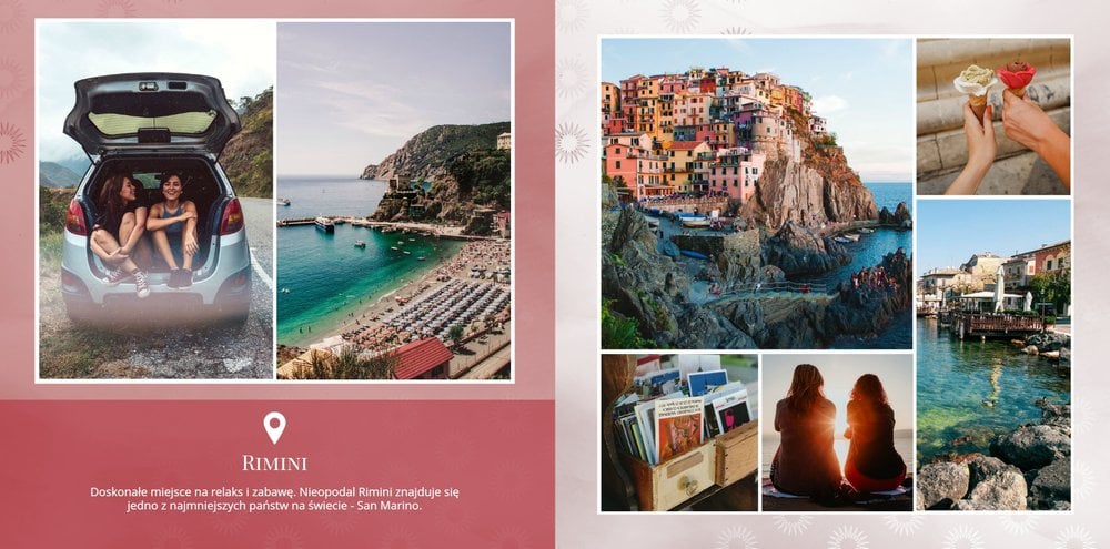 Kolejna odsłona szablonu fotoksiążki z kolekcji podróżniczej, stworzona z myślą o zachwycających Włoszech.